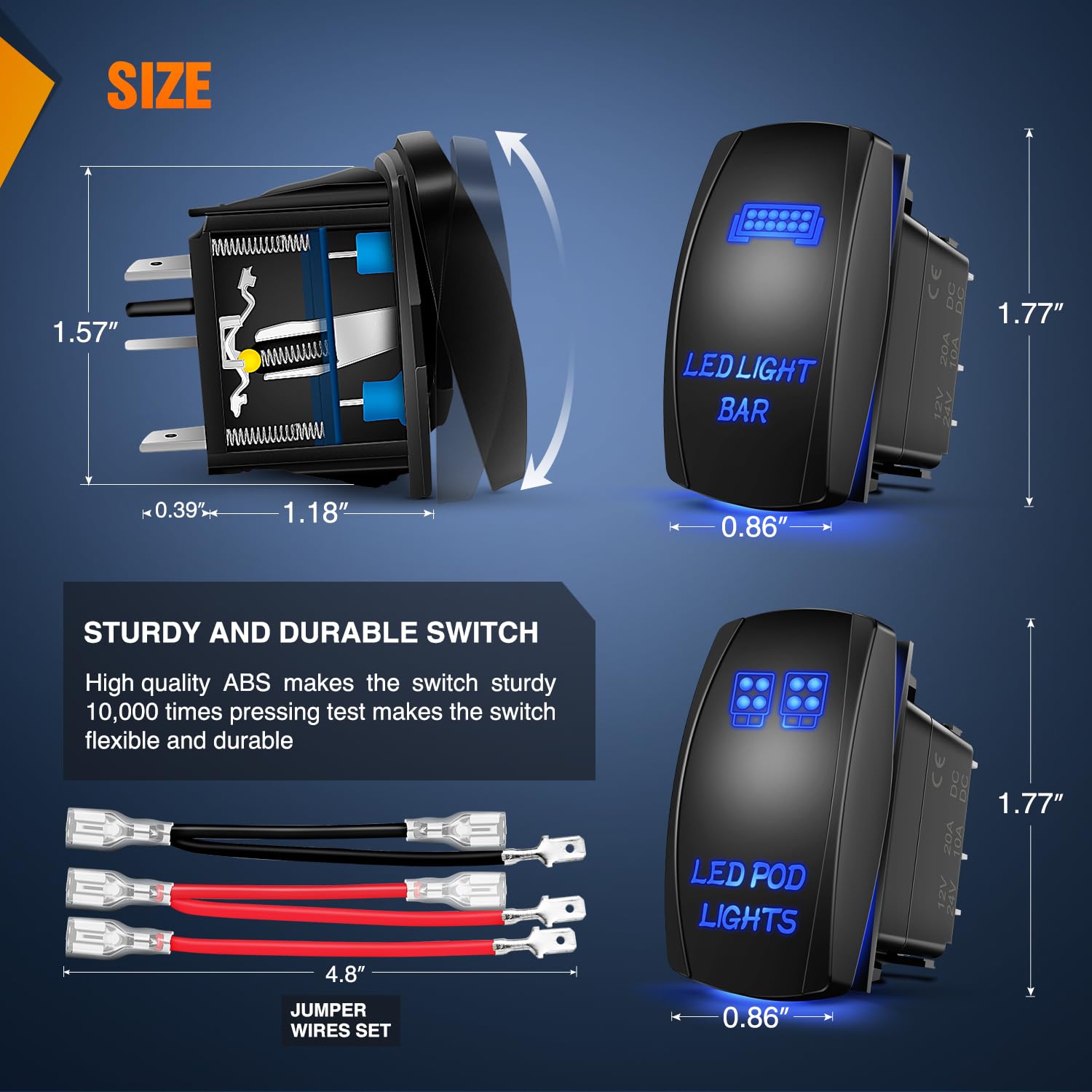 – Pacote Inclui: 1x interruptor rocker de luz pod LED de 5 pinos, 1x interruptor rocker de barra de luz LED de 5 pinos, 2x conjunto de fios jumper, diagrama de fiação.