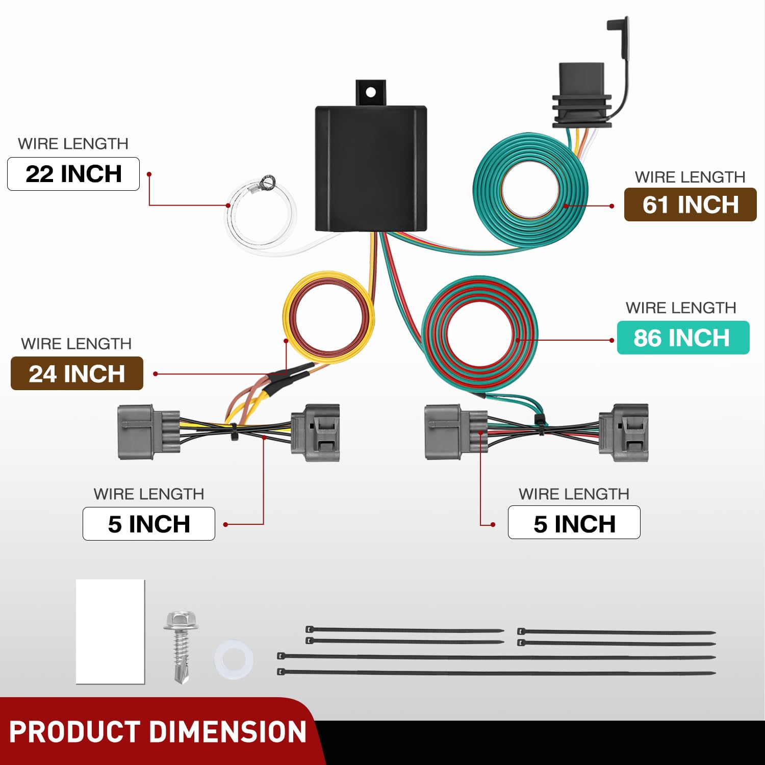 A instalação é extremamente simples, pois não requer cortes ou emendas na fiação original do veículo. O kit de fiação para reboque é um sistema plug-and-play, que se conecta à fiação existente do seu veículo, equipando-o com um conector de 4 pinos traseiro padrão para facilitar a conexão e o reboque de um trailer.