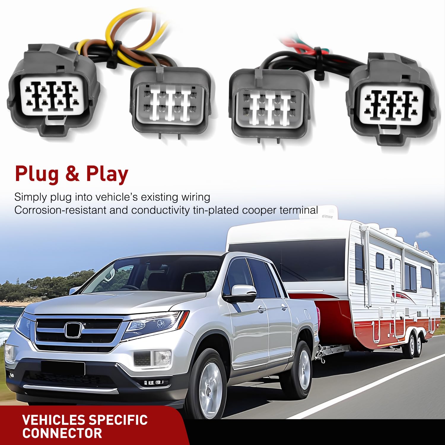 O Nilight 4 Pin Trailer Wiring Harness Kit 55585 é a solução ideal para quem possui uma Honda Ridgeline de 2006 a 2014 e busca uma conexão de reboque eficiente e prática. Este kit de fiação para reboque é projetado especificamente para se integrar perfeitamente ao sistema elétrico do seu veículo, utilizando conectores compatíveis com OEM que se conectam diretamente à fiação original, localizada atrás da carcaça das luzes traseiras do lado do motorista e do passageiro.