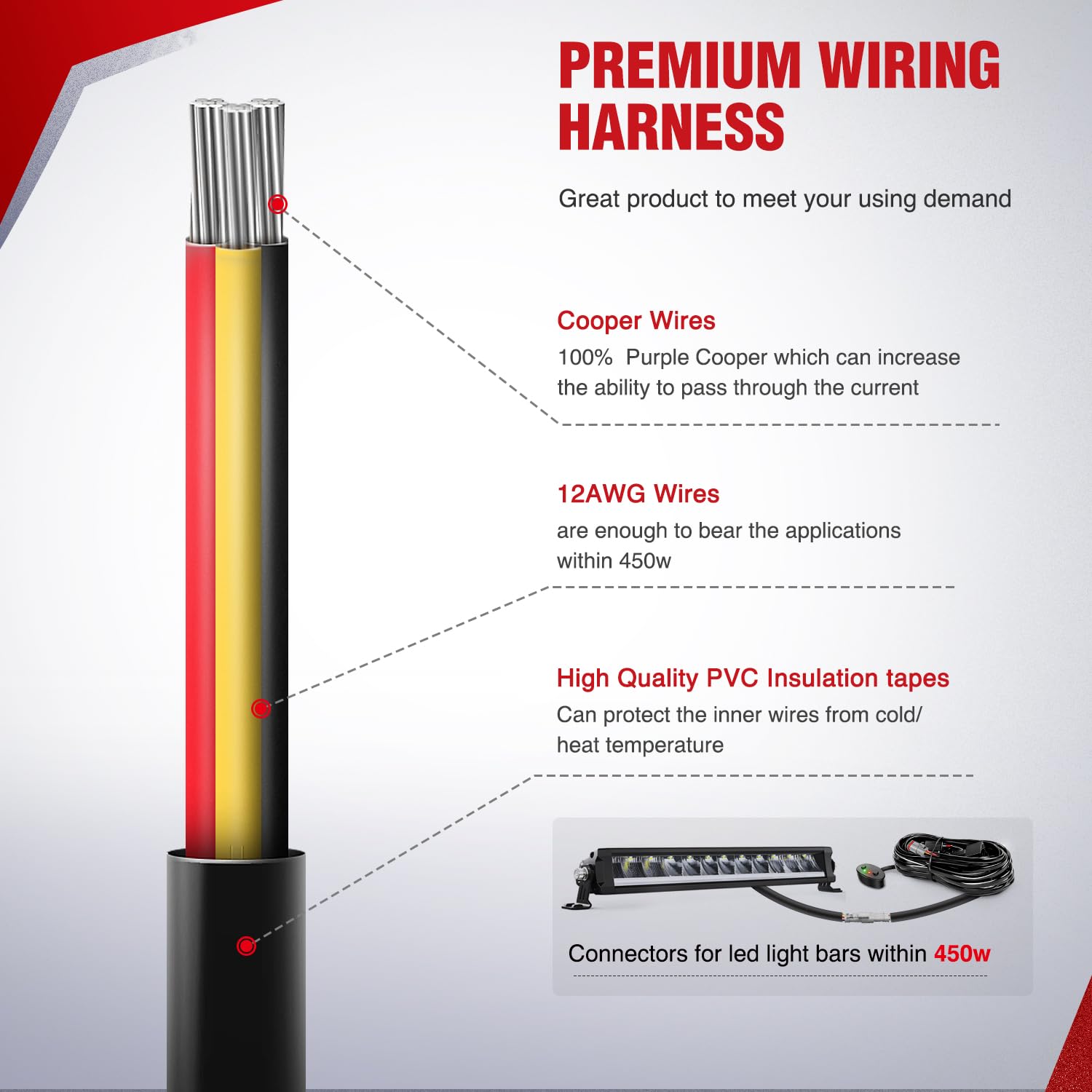 Kit de Fiação para Barra de LED Nilight 12AWG com Conector DT, Interruptor On/Off, Relé de Potência e Fusível para Luzes Off Road e Trabalho - Modo Duplo