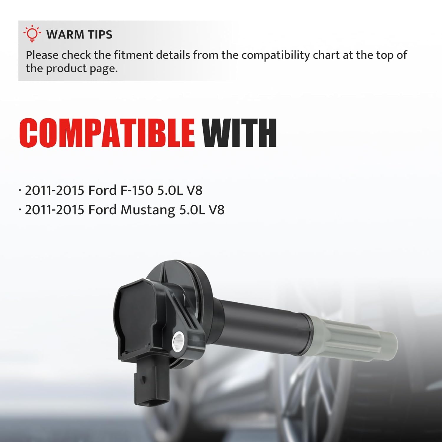 – Compatibilidade: Conjunto de 8 bobinas de ignição para 5.0L V8 Flex: 2011-2015 Ford F-150 e Ford Mustang.