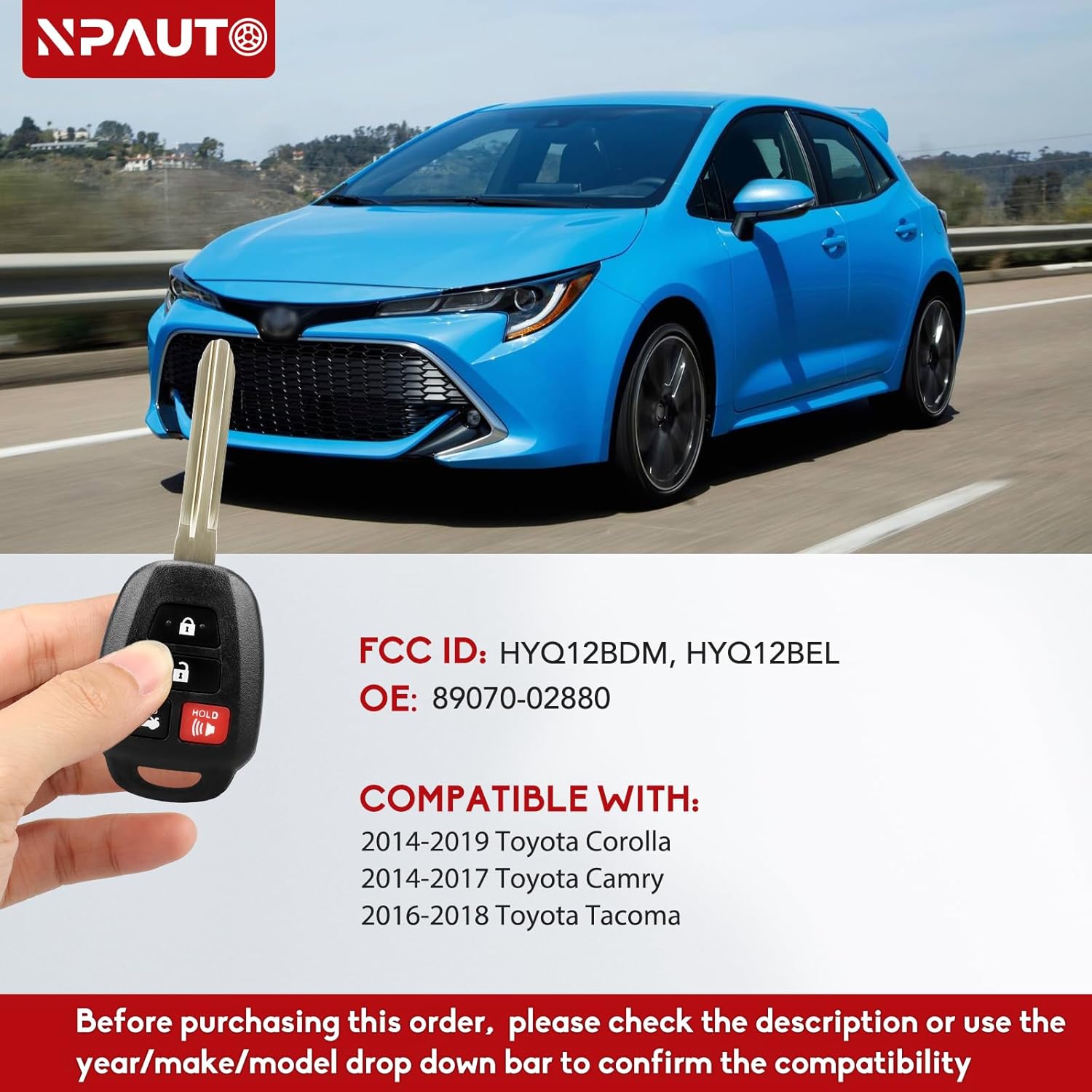 - Compatibilidade: Este controle remoto é especificamente projetado para os modelos dos EUA do Toyota Corolla (2014-2019), Toyota Camry (2014-2017) e Toyota Tacoma (2016-2018). Nota: Antes de realizar a compra, verifique a descrição ou utilize a barra de seleção de ano/marca/modelo para confirmar a compatibilidade.