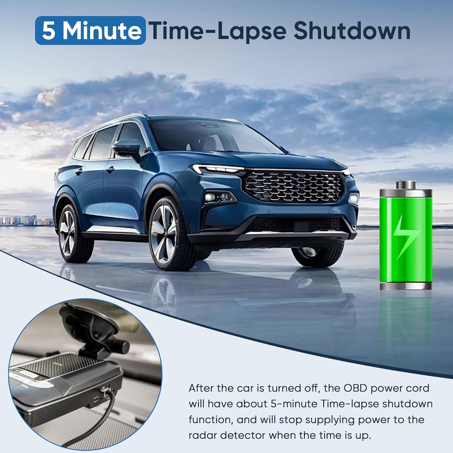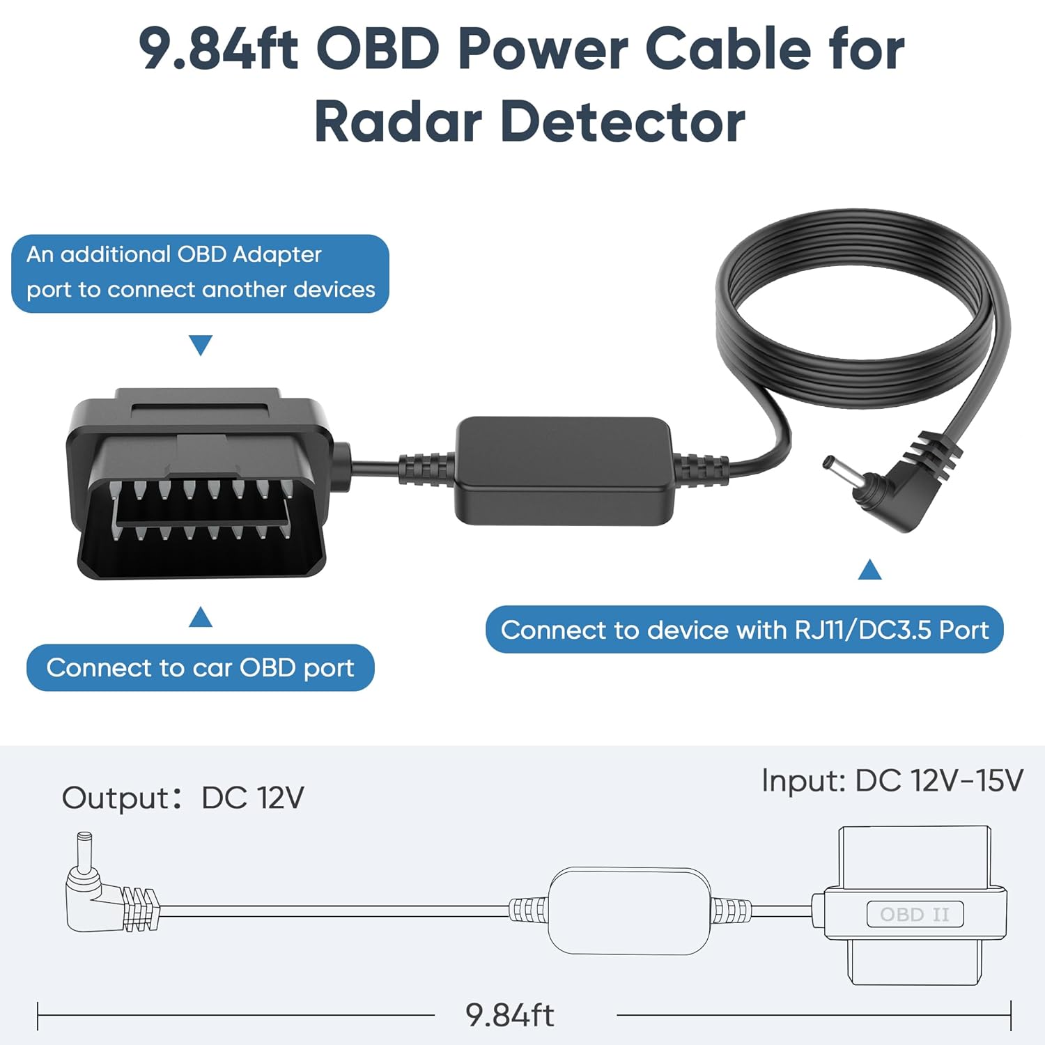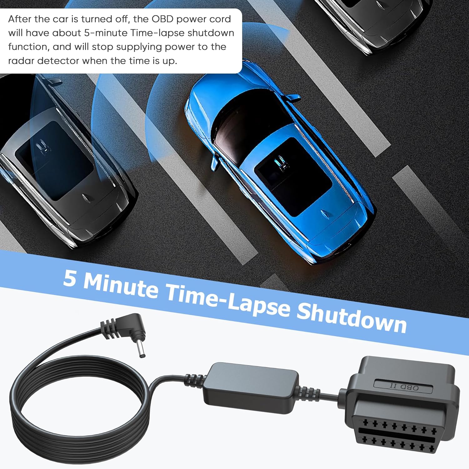 Este cabo apresenta uma função de desligamento automático em um intervalo de 5 minutos após o desligamento do veículo, garantindo que o detector de radar não consuma energia desnecessária. Além disso, o OBD Radar Detector Power Cable converte a energia de 12V DC para uma saída RJ-11, utilizando chips personalizados que asseguram uma alimentação estável e confiável para seu dispositivo.