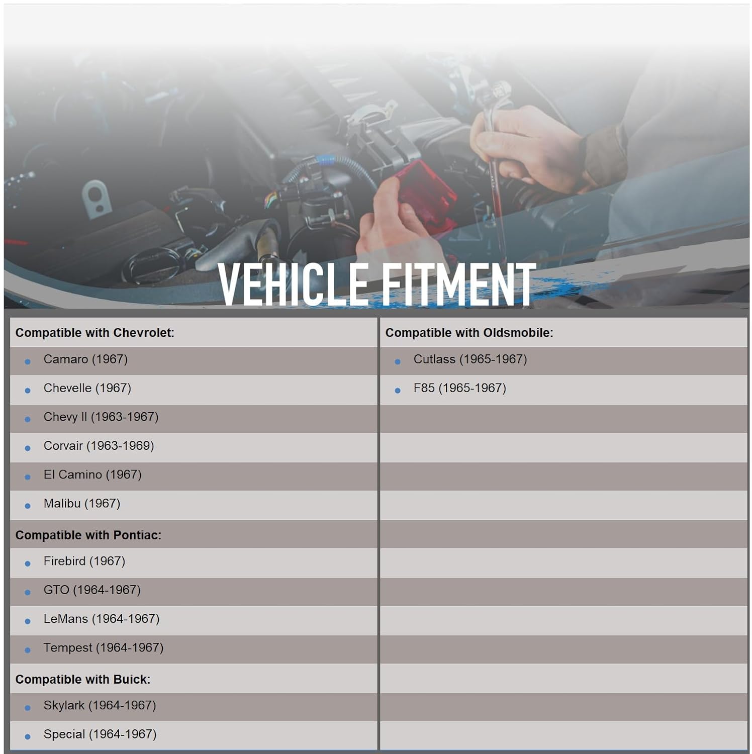 – Compatibilidade: Projetado especificamente para Buick, Chevrolet, GMC, Oldsmobile e Pontiac de 1963 a 1969.