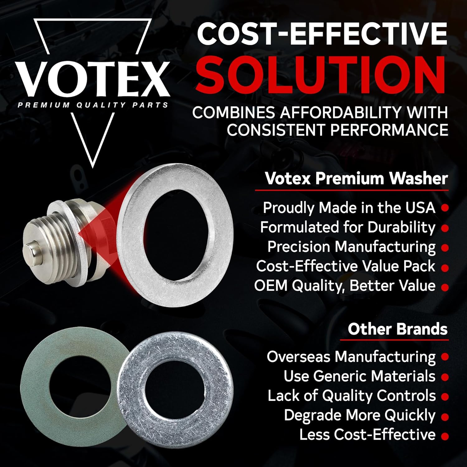 Com um pacote econômico contendo 20 unidades, as arruelas VOTEX M14 oferecem um excelente custo-benefício para múltiplas trocas de óleo. Comparadas às arruelas OEM individuais, elas mantêm a qualidade de vedação e desempenho, permitindo que você realize manutenções regulares sem comprometer a qualidade.