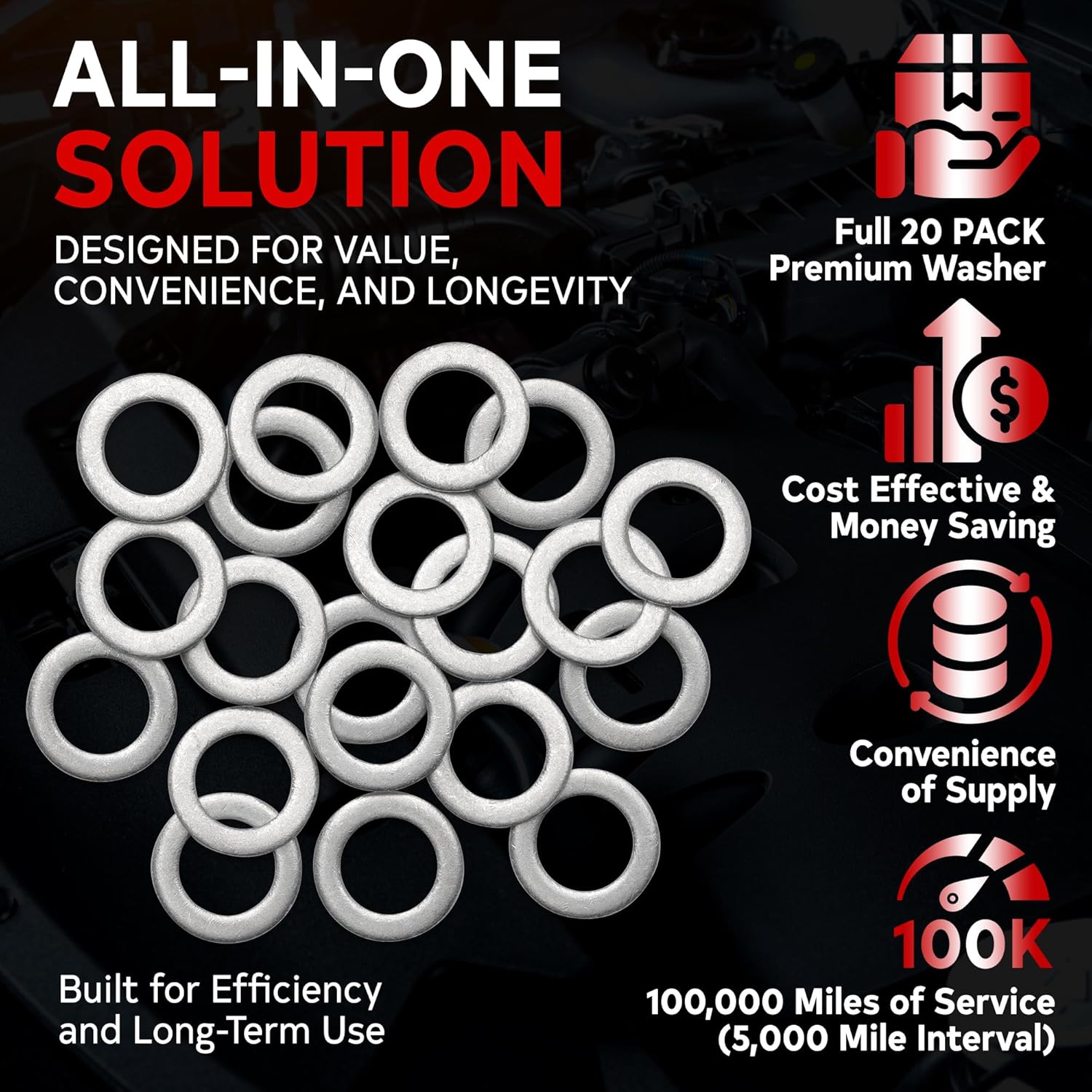 Arruela de Vedação para Parafuso de Drenagem de Óleo – Dodge Ram 1500 (2014-2025) – 3.0L – 6 Cilindros – Pacote com 20 Unidades – Fabricado nos EUA