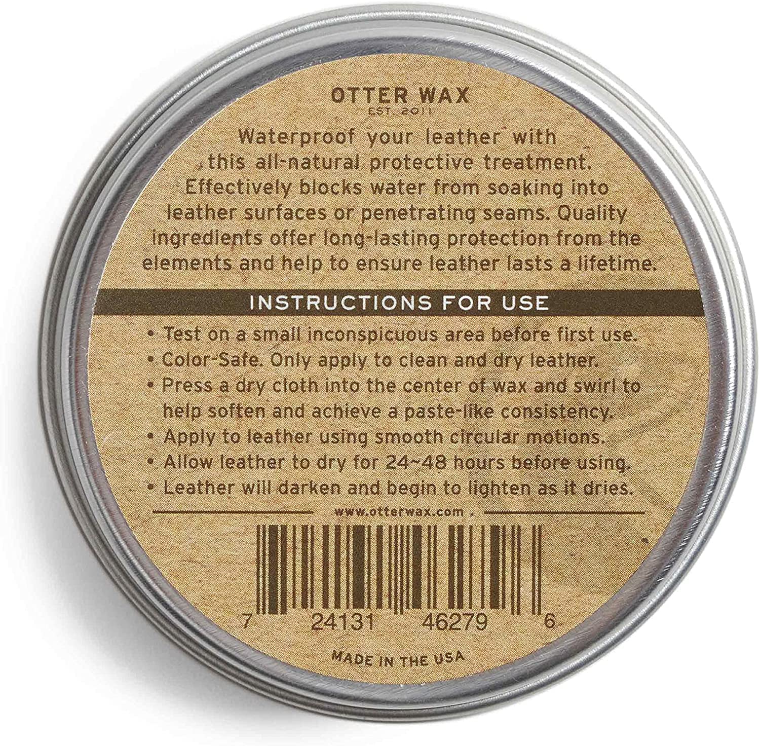 I ordered a leather phone case that was not only not waterproof, but would turn a hideous shade of dark brown with every water drop and take hours to dry. After using the otter wax, the case was 100% waterproof! And it didn’t change the color of the leather at all. When I got done wiping it down after the applying the wax, it didn’t feel greasy in anyway. I included a picture of water drops on the phone case that bead up and then the phone case after wiping the water off. It’s like the water was never there. I’m very impressed with this stuff.