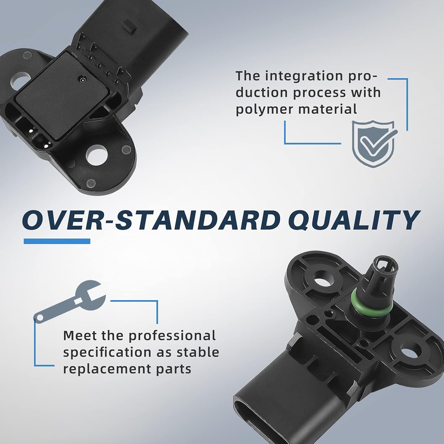 Sensor de Pressão Absoluta do Coletor OTUAYAUTO Premium - Substituição para Audi A4 A6 A7 A8 Q5 Q7 S4 S5 S6 SQ5 2005-2015 e Volkswagen VW Beetle Golf Jetta Touareg