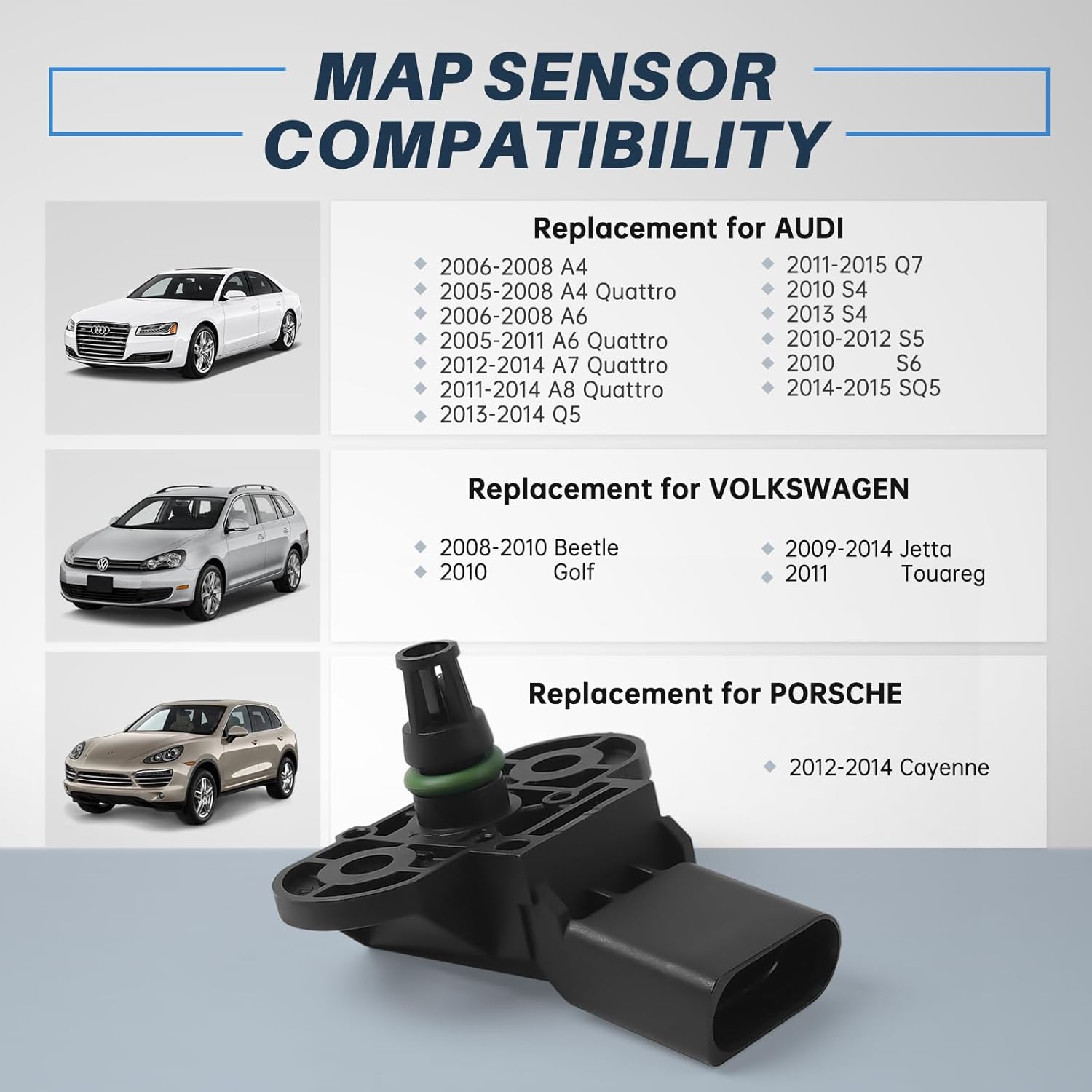 Sensor de Pressão Absoluta do Coletor OTUAYAUTO Premium - Substituição para Audi A4 A6 A7 A8 Q5 Q7 S4 S5 S6 SQ5 2005-2015 e Volkswagen VW Beetle Golf Jetta Touareg