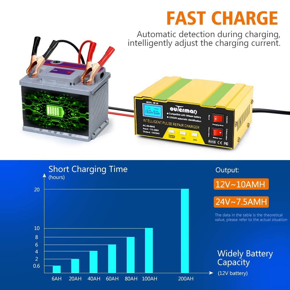 Descrição do Produto: Carregador de Bateria Outerman 12V 24V