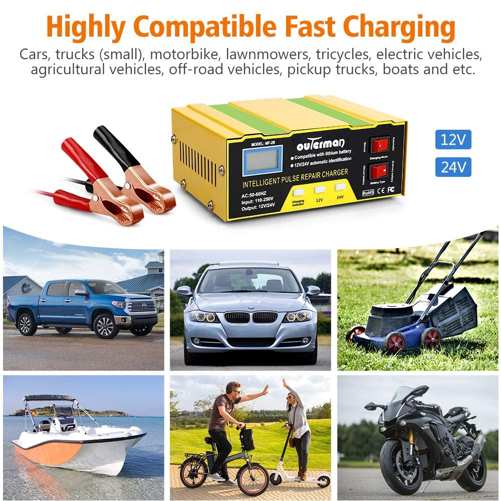 O Carregador de Bateria Outerman é a solução ideal para quem busca eficiência e versatilidade no carregamento de baterias de veículos, motos, barcos, cortadores de grama e muito mais. Com a capacidade de diagnosticar e reparar diversos problemas de bateria, incluindo baterias inundadas ou seladas, este carregador é um verdadeiro aliado na manutenção da saúde da sua bateria. A função de reparo por pulso ajuda a restaurar baterias com perda de carga, prolongando sua vida útil. Compatível com uma ampla gama de veículos e tipos de bateria, incluindo baterias de lítio e chumbo-ácido, o Outerman é perfeito para automóveis, motocicletas, embarcações, RVs, esportes motorizados, jardinagem e brinquedos infantis.