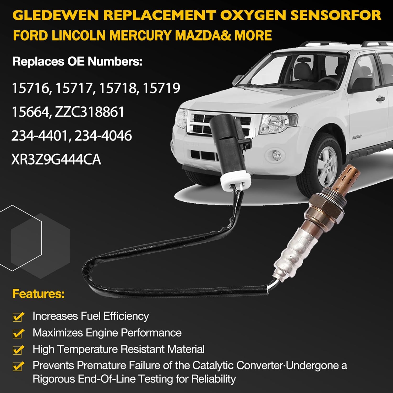 O Sensor de Oxigênio Upstream Downstream O2 Sensor 4Pcs é a solução ideal para proprietários de veículos Ford F150, F250, Ranger, Expedition, Explorer, Escape, Mazda Tribute e Lincoln que buscam um produto de alta qualidade e eficiência. Este sensor é compatível com uma ampla gama de modelos, incluindo os códigos de substituição 15716, 15717, 15718, 15719, ZZC318861, XR3Z9G444CA, 15664, 234-4401 e 234-4046. É essencial verificar a compatibilidade do plugue do sensor O2 com a peça original do seu veículo, pois variações podem dificultar a instalação correta.
