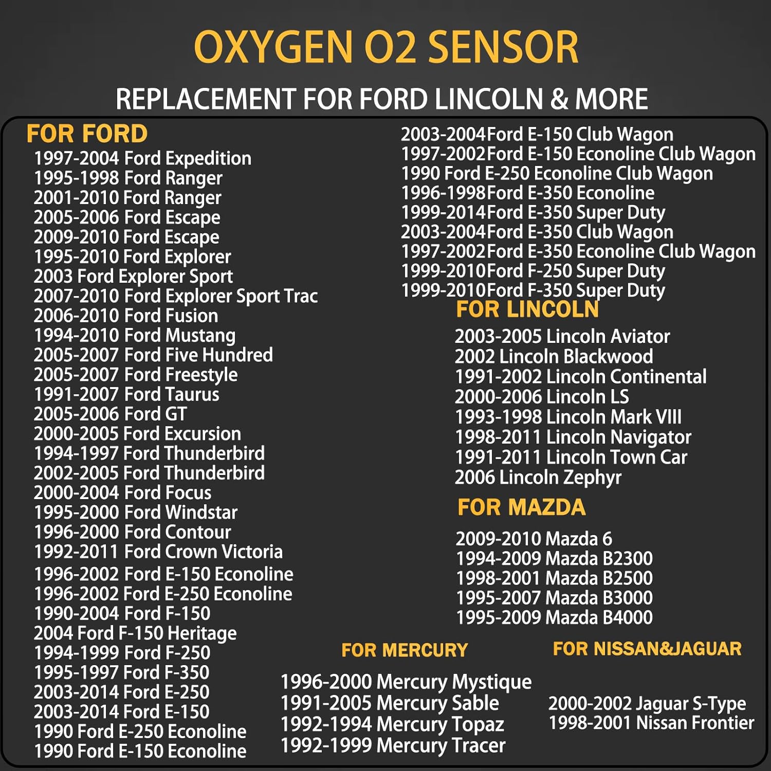 Sensor de Oxigênio Upstream e Downstream O2 – 4 Peças | Compatível com Ford F150, F250, Ranger, Expedition, Explorer, Escape, Mazda Tribute e Lincoln