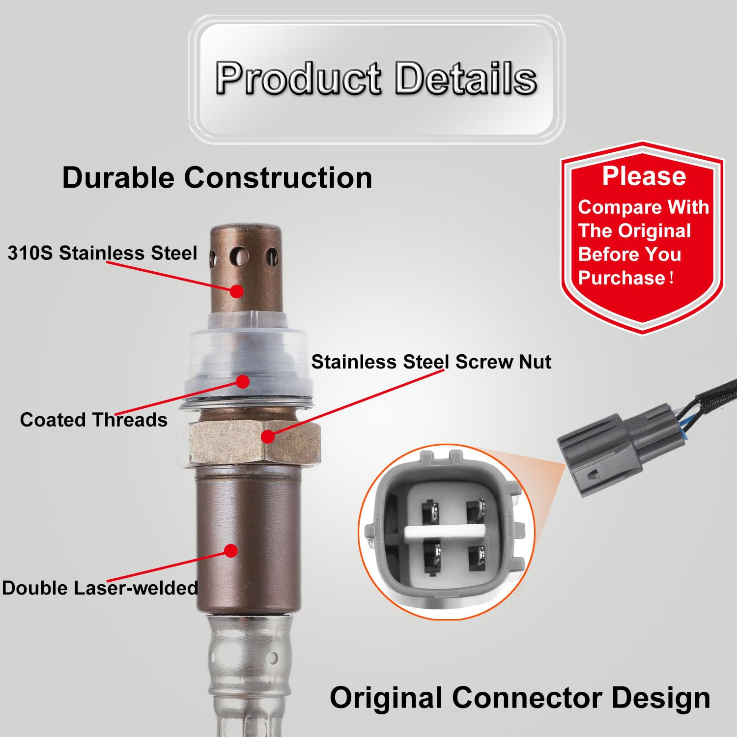 – Alto Desempenho: Com uma camada de proteção dupla, camada de armadilha de óxido de alumínio, filtro PTFE e carcaça de aço inoxidável, este sensor reduz emissões nocivas, aumenta a economia de combustível e melhora o desempenho do motor, além de prevenir falhas prematuras do conversor catalítico.
