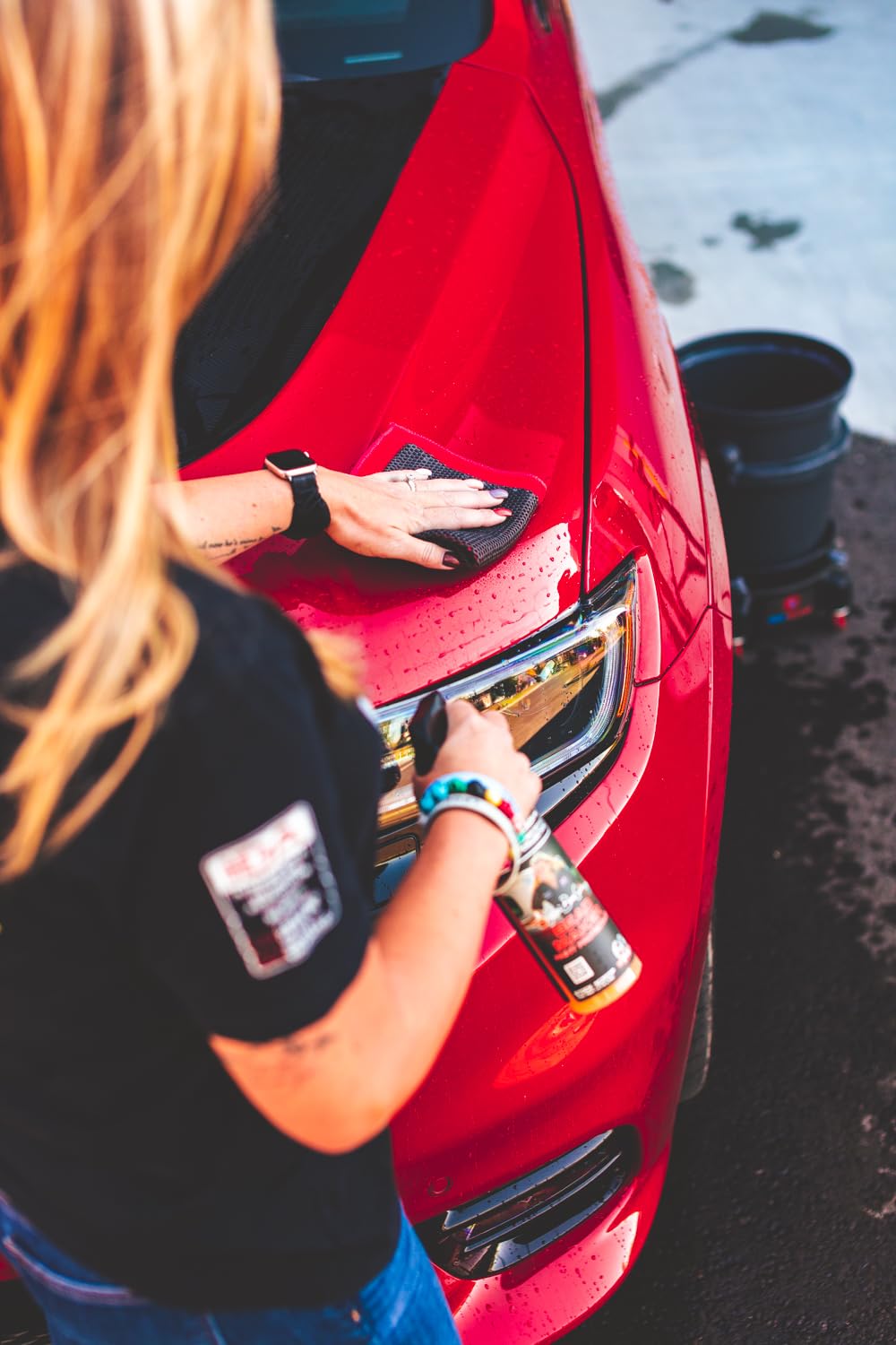 Before buying this towel I had seen it used by several Youtube detailers and I was curious about it. I know how important claying a vehicle is but hate the old school clay and the time and effort it took. I decided to give it a try. I soaked my new towel in some rinseless wash and first did all my windows to break in the towel then started on the paint. I sprayed the panel with rinseless and added a mist of clay lube for lubrication.