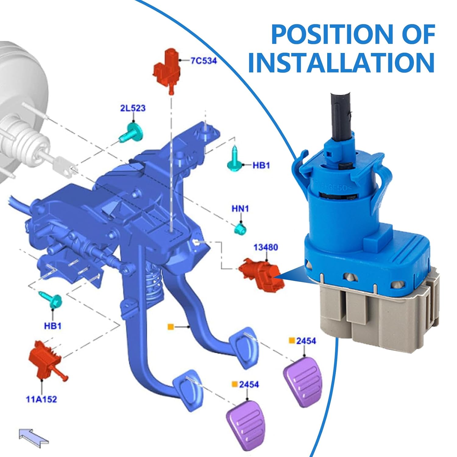 Interruptor de Luz de Freio 4 Pinos - Peça de Substituição Original 1S10920 7T4Z13480AA 8T4T96854M 8T4Z13480A, Acessório Universal para Pedal de Freio 4.33" x 1.57" x 1.57" - Pack 1