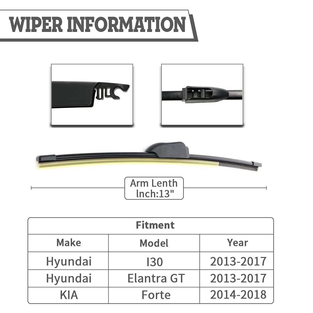 I bought this for my 2015 Hyundai Elantra GT hatchback and the fit was perfect and so easy to install! I am very impressed. They work well and don’t streak. The quality was exceptional. Run don’t walk to purchase!