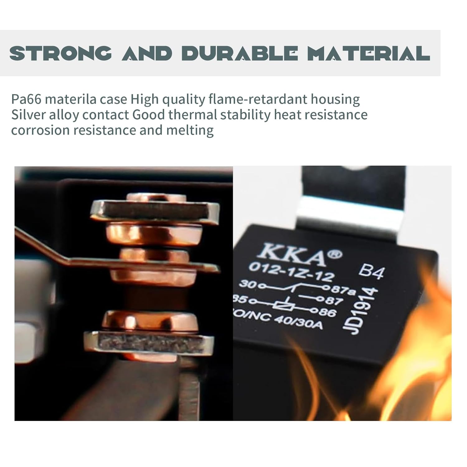 Com uma tensão de 12V, esses relés são amplamente utilizados em sistemas automotivos, apresentando excelente compatibilidade com a maioria dos veículos, incluindo carros, caminhões e vans. Os contatos dos relés são feitos de liga de prata, o que proporciona alta condutividade, durabilidade e confiabilidade superior, garantindo que seu sistema elétrico funcione sem falhas.