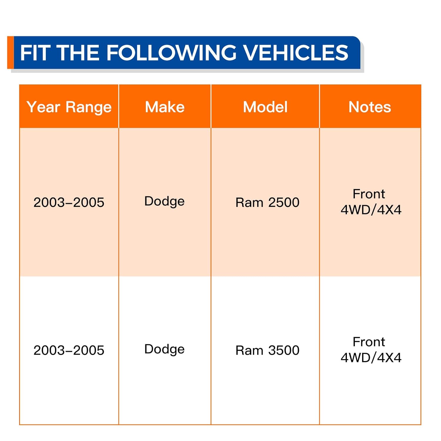 – Compatibilidade: Dodge Ram 2500 e 3500, 4WD/4X4 (2003-2005)