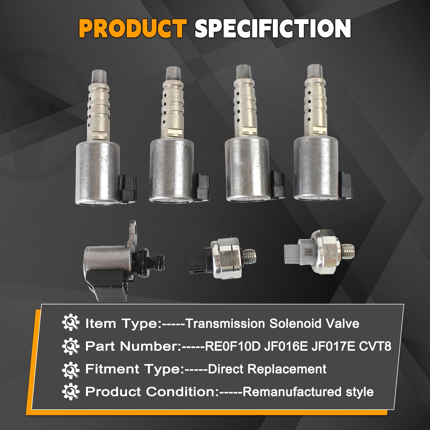 – PART NUMBER & PART NAME: RE0F10D JF016E JF017E CVT8; Kit de Válvula Solenoide de Transmissão