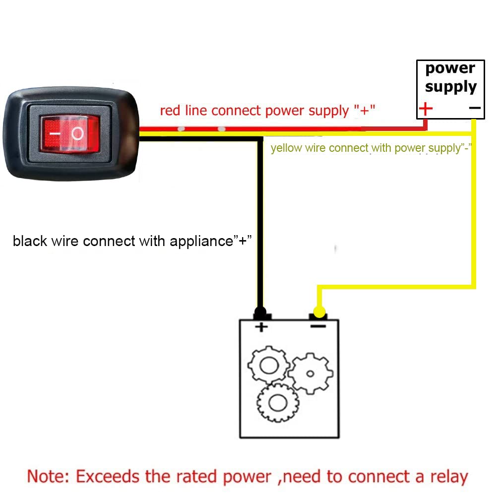 A instalação é simples, com três fios: preto, vermelho e amarelo. O fio vermelho deve ser conectado à fonte de alimentação positiva, enquanto o fio amarelo se conecta à fonte negativa. O fio preto é destinado ao polo positivo do equipamento, e o fio amarelo pode ser ligado ao polo negativo do dispositivo ou do veículo. O interruptor possui uma funcionalidade de 2 posições: pressione uma vez para ligar (ON) e pressione novamente para desligar (OFF), com um LED vermelho que indica o estado do interruptor.