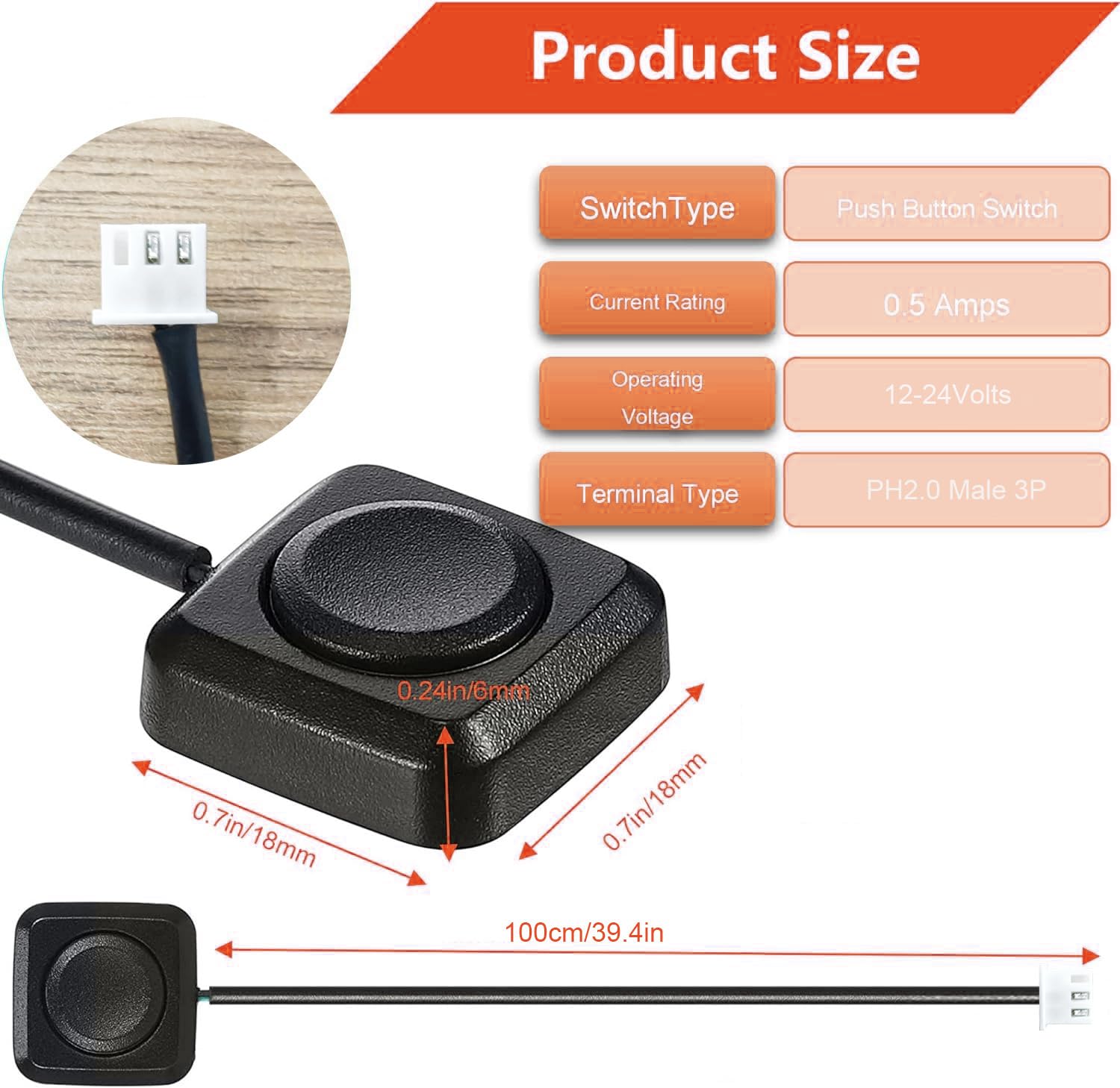 Com dimensões de 42.8mm X 30mm X 23mm e um comprimento de fio de 60CM, este interruptor é compacto e fácil de integrar em qualquer painel. A fiação é projetada para suportar temperaturas extremas, variando de -40°C a +125°C, garantindo durabilidade e confiabilidade em diversas condições climáticas.
