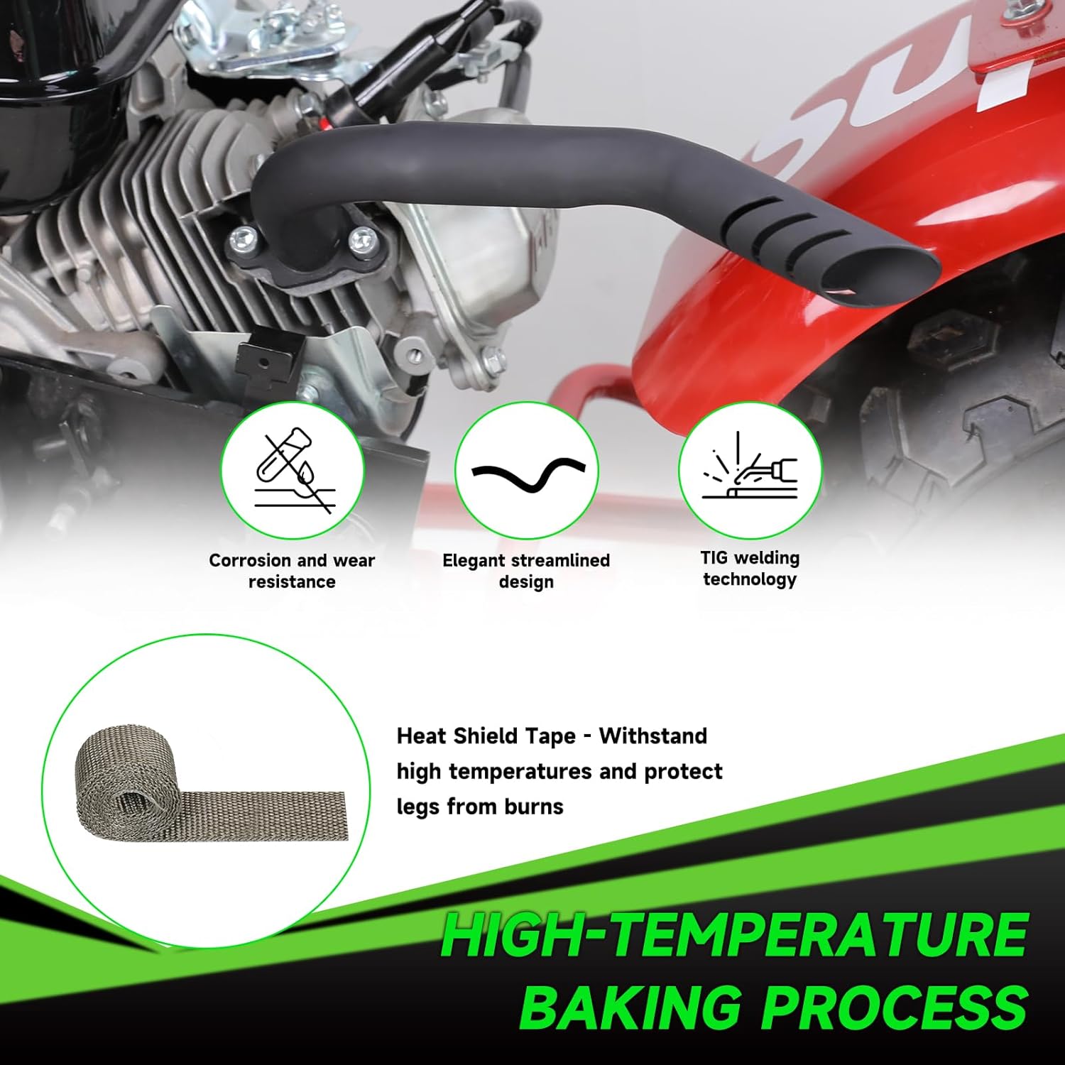 - Melhore a Potência com o Escape 212cc: O tubo de escape 212 atualizado aumenta a potência e a eficiência dos motores, desde o sistema de admissão até o sistema de escape. Este tubo de escape para Predator 212 produz um rugido impressionante, aprimorando a acústica da sua ride, essencial para quem busca uma experiência de pilotagem mais rápida e emocionante em mini bikes e go-karts.
