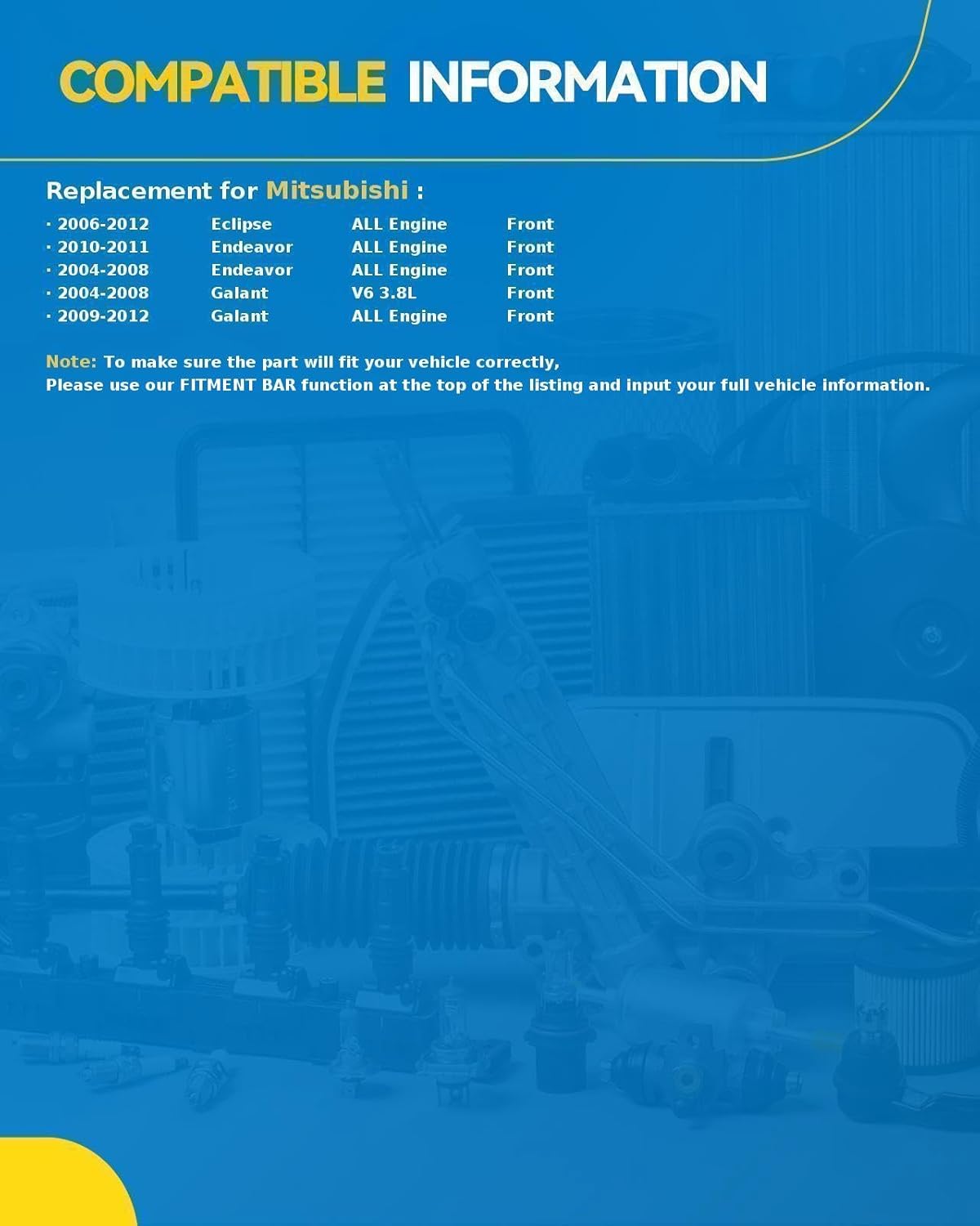 - Compatibilidade: Conjunto de Rolamento e Cubo de Roda Dianteiro para Mitsubishi Eclipse (2006-2012), Mitsubishi Endeavor (2004-2008, 2010-2011) e Mitsubishi Galant (2004-2012).