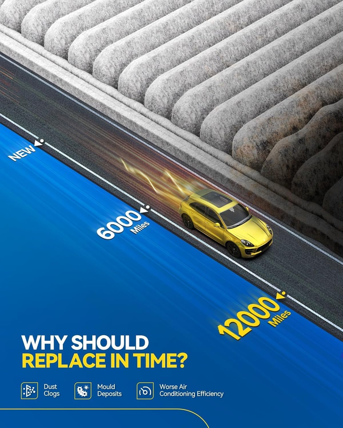 Para garantir que o filtro continue a oferecer ar limpo e fresco, recomenda-se a substituição a cada 12 meses ou 12.000 milhas. Antes de adquirir, verifique o ano, modelo e marca do seu veículo para assegurar a compatibilidade.