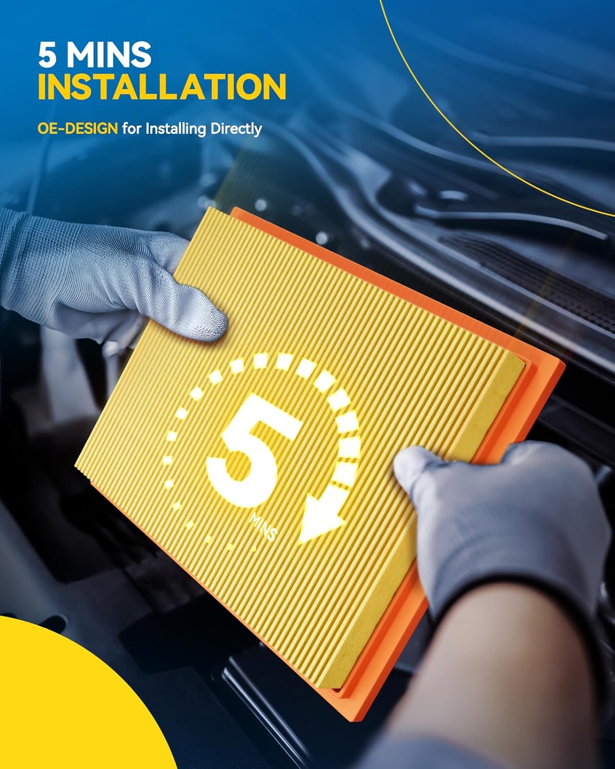 A instalação do PHILTOP CA11170 é rápida e prática, levando apenas 5 minutos. Com um design original (OE), ele se encaixa perfeitamente no seu veículo, sem necessidade de ferramentas especiais ou modificações. Para garantir o melhor desempenho, recomenda-se a troca do filtro a cada 10.000 a 12.000 milhas, ou a cada 5.000 a 6.000 milhas em condições de poeira ou umidade constante.