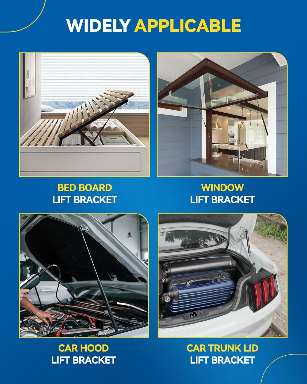 - [PACKAGE INCLUDES] O pacote inclui 2 peças de Lift Supports. A embalagem é equipada com bolsas de bolha e caixas grossas, que servem como absorvedores de choque e protegem o produto durante o transporte.