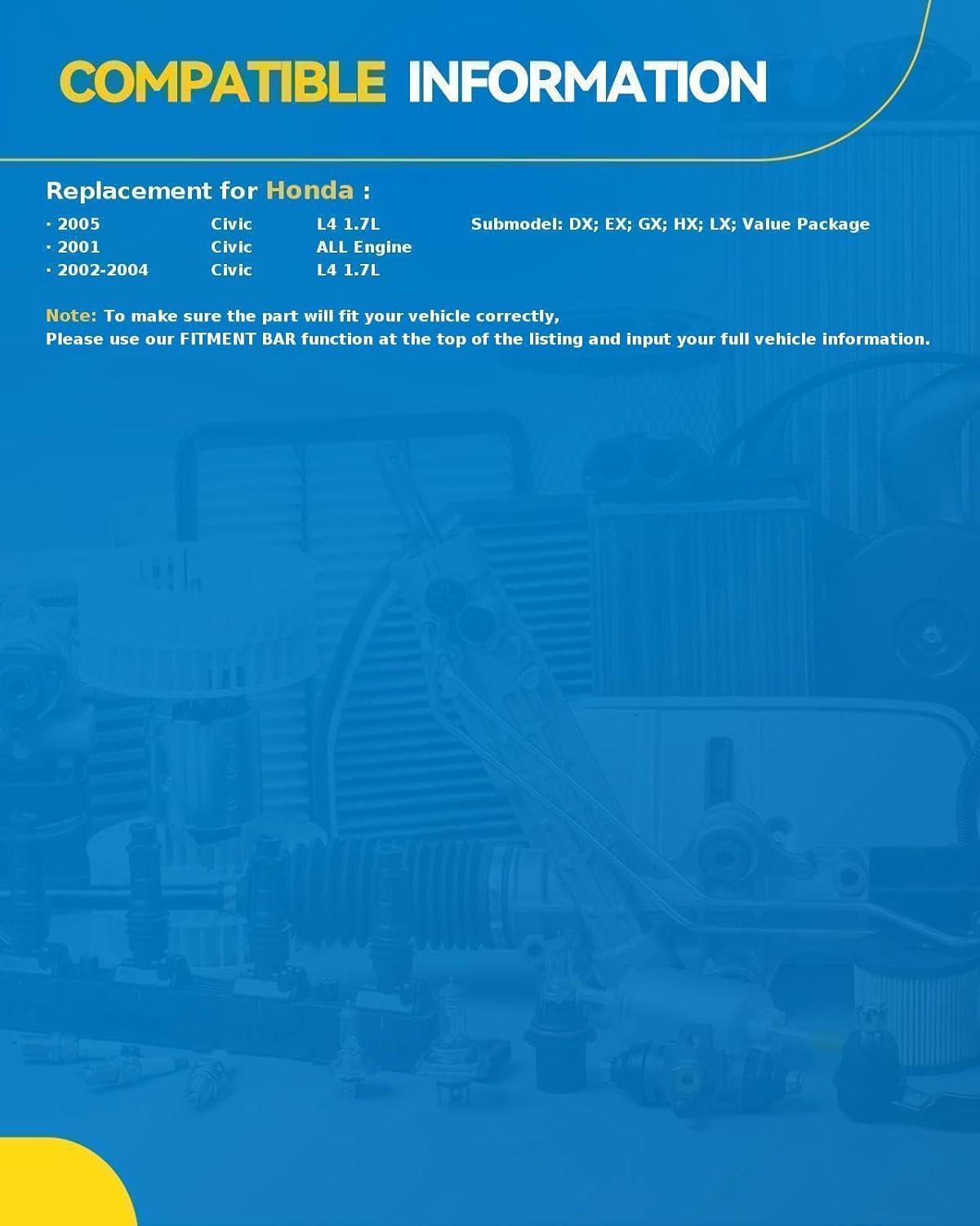 – Compatibilidade: Projetado especificamente para Honda Civic 2001-2005 1.7L.