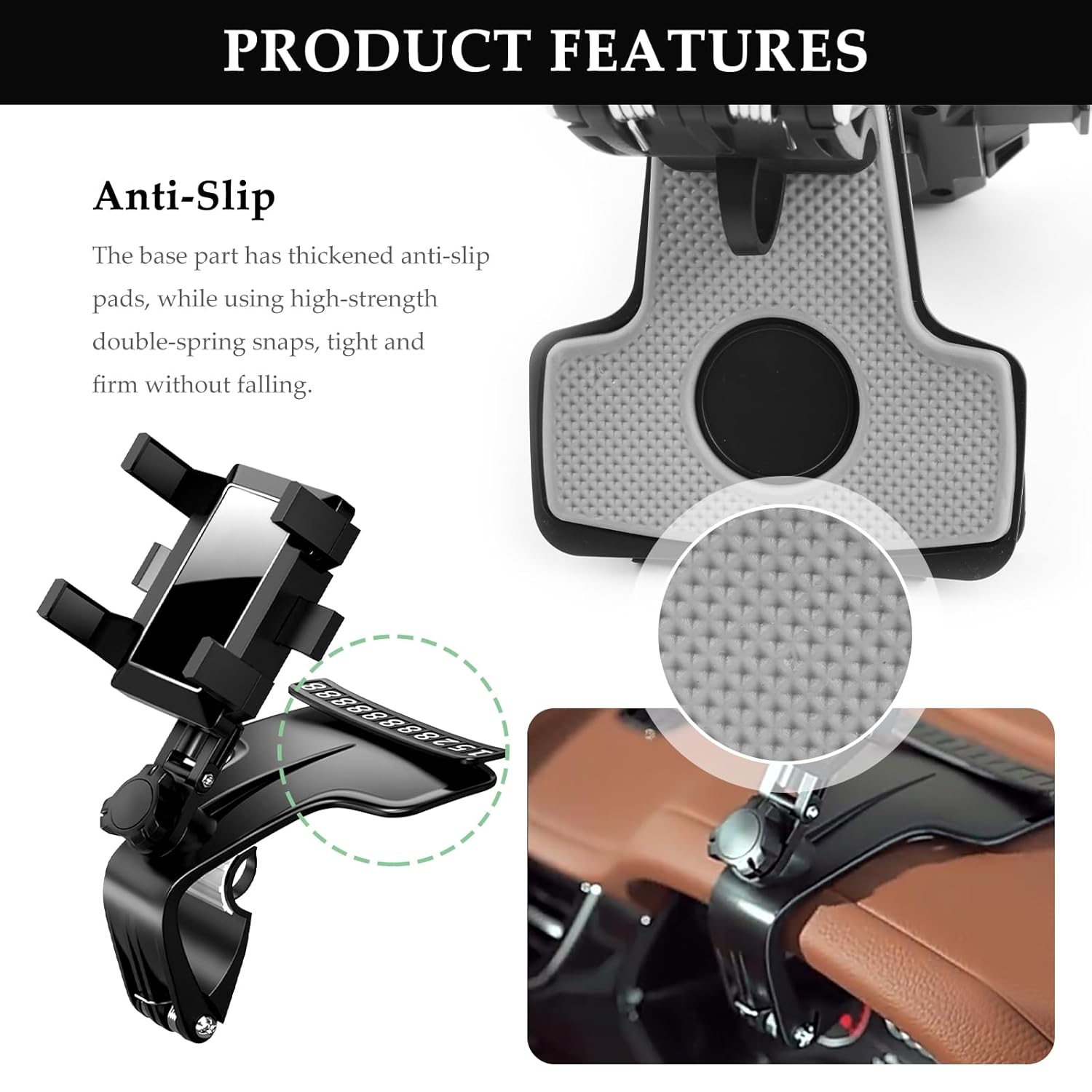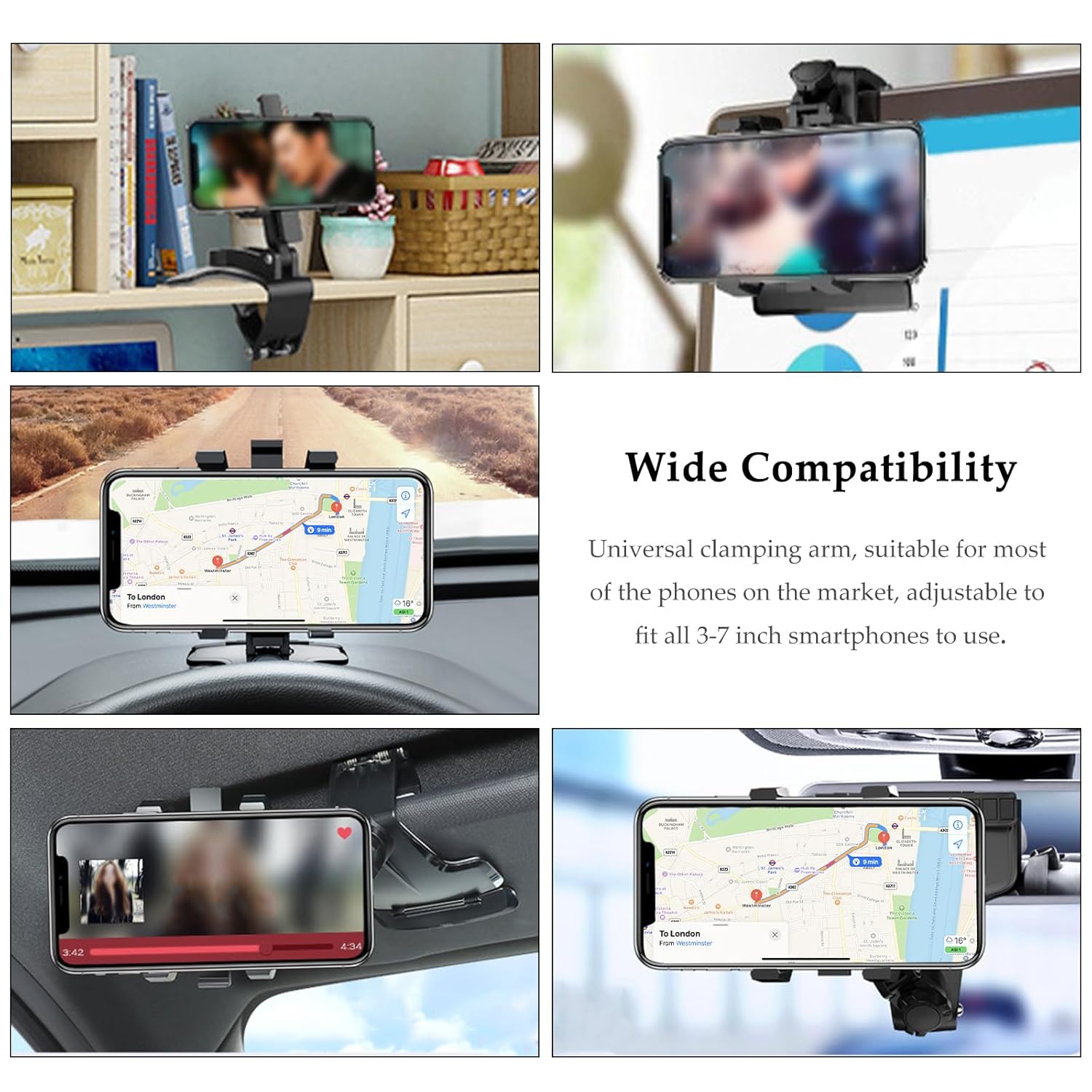 – Compatibilidade Ampla: O braço de clipe universal é adequado para smartphones com espessura de até 0,4 polegadas, tornando-o compatível com a maioria dos dispositivos do mercado. A base pode ser fixada no painel, no visor do sol ou no espelho retrovisor, além de ser útil em outros cenários fora do carro.