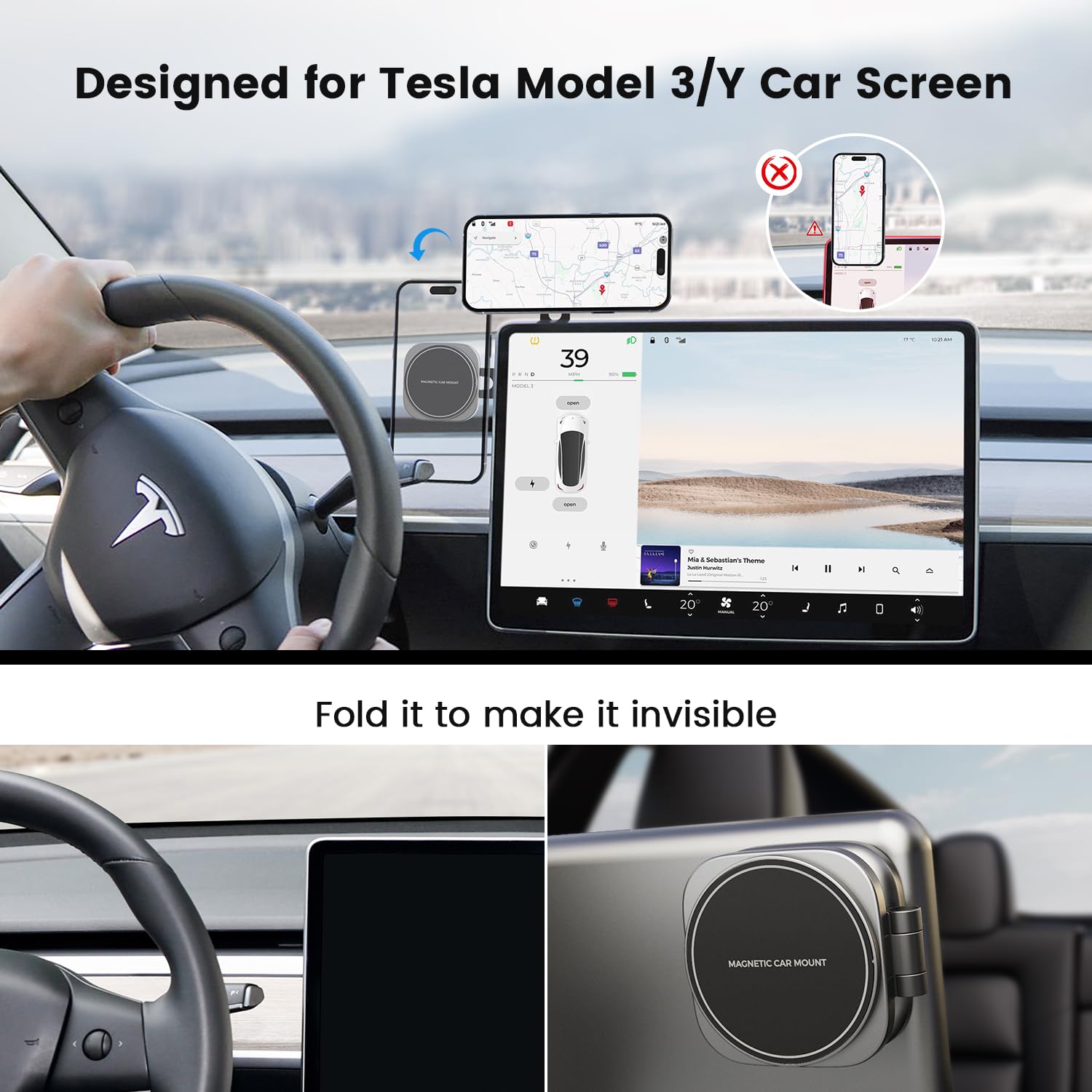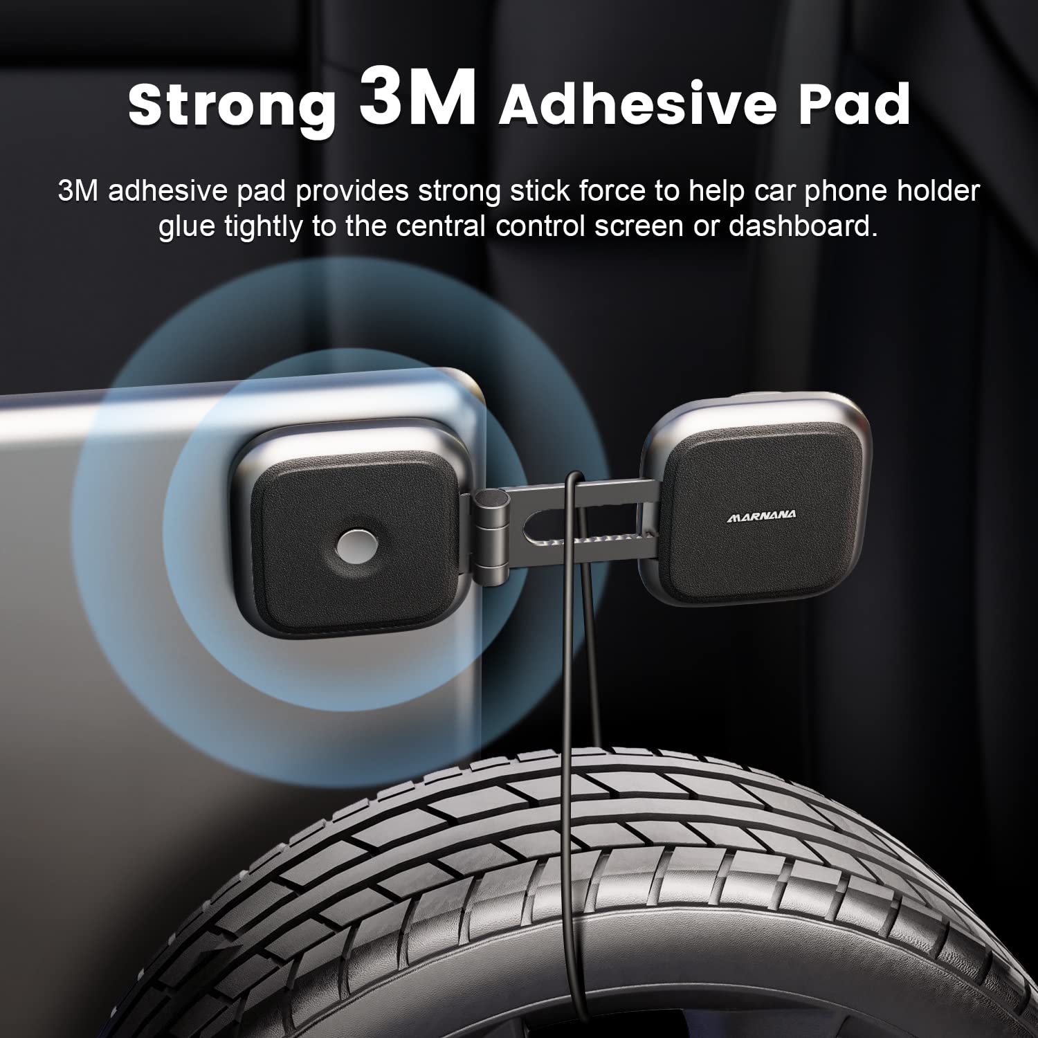 - Projetado para Tela do Carro: O suporte para telefone Marnana é ideal para veículos com tela central, especialmente para os modelos Tesla 3 e Y. Sua capacidade de se dobrar e se esconder na parte traseira da tela central o torna invisível, combinando com a estética premium do interior do veículo.