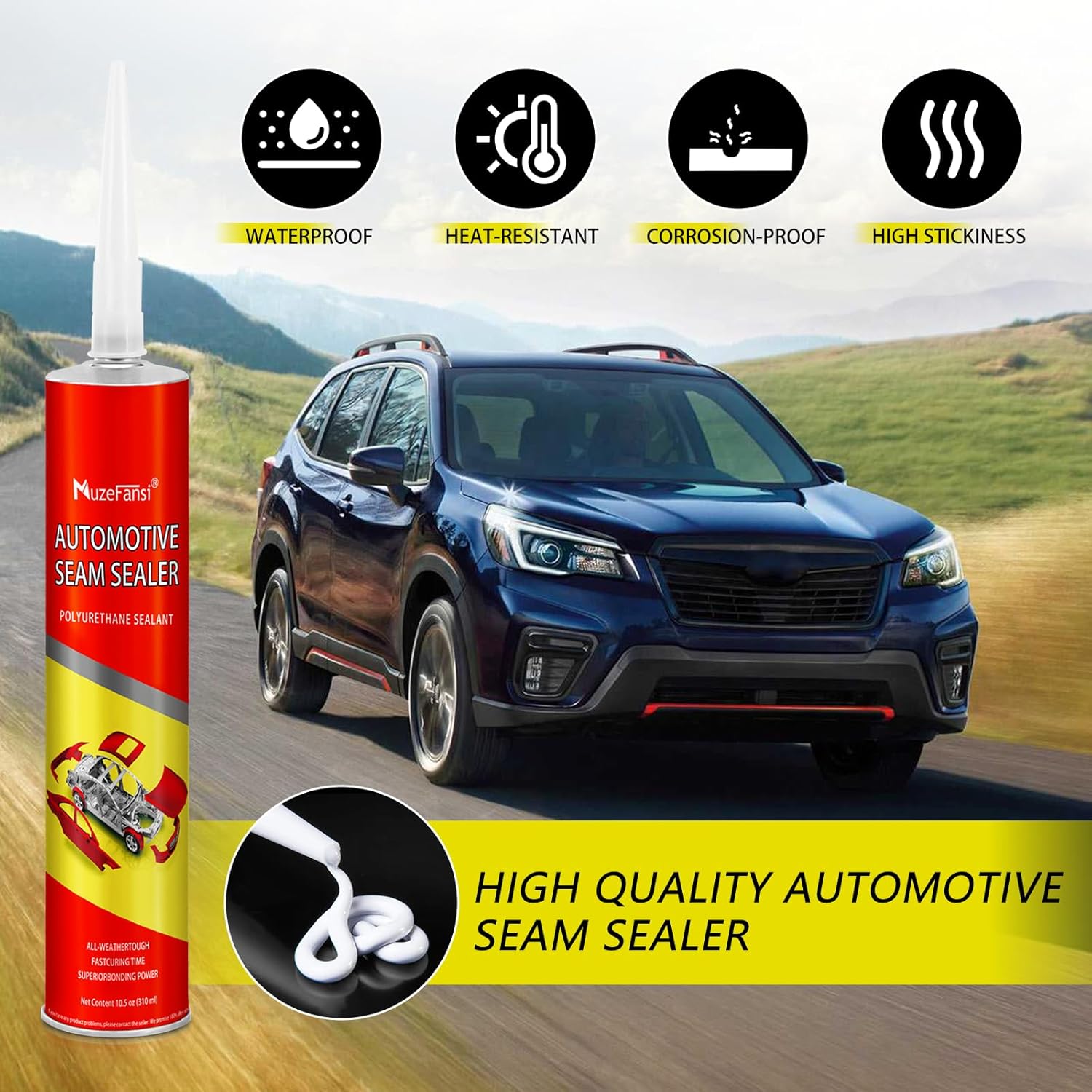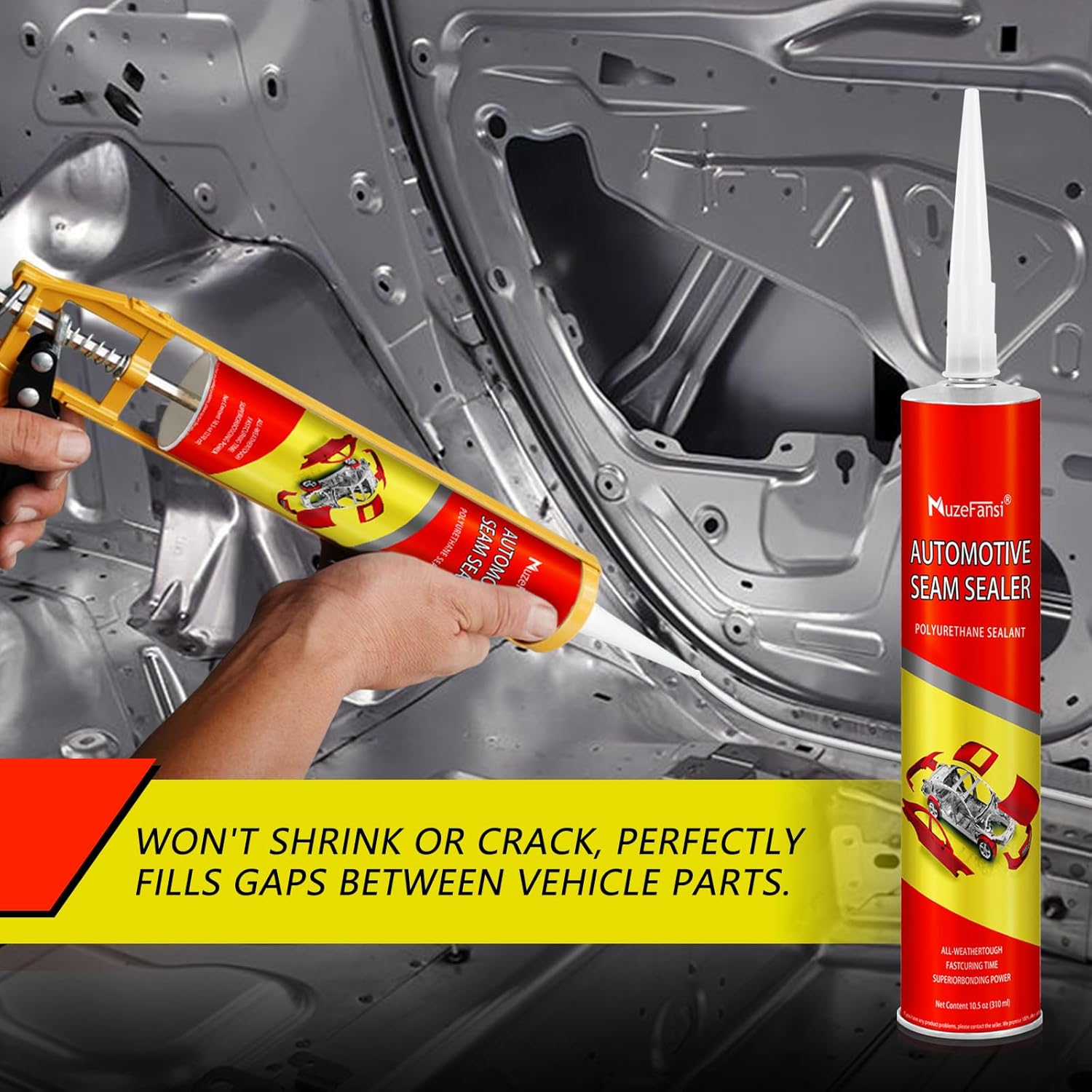 Professional Auto Seam Sealer, Paintable Polyurethane Body Filler for Cars, Trucks, and Metal Surfaces, Quick-Set Automotive Seam & Joint Sealant – Includes Gloves & Tip – White