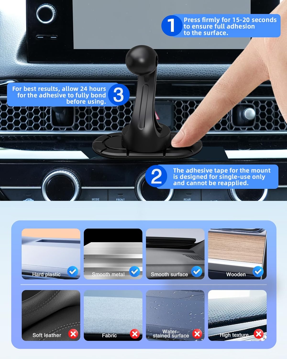 I have a 2022 Camry with a big screen below the dash. There is very little space on the side of it but I still wanted the mount there and not on the dash (I’m short and didn’t want to create obstructions). With the base of this item being small and flexible it for PERFECT!!!! The adhesive is super strong (I have a rather heavy iPhone 16 pro max) and holds my phone without worry of it falling off! Love this 100% recommend