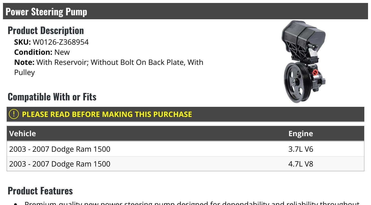 1 avaliação para Bomba de Direção Hidráulica com Reservatório – Compatível com Dodge Ram 1500 2003-2007