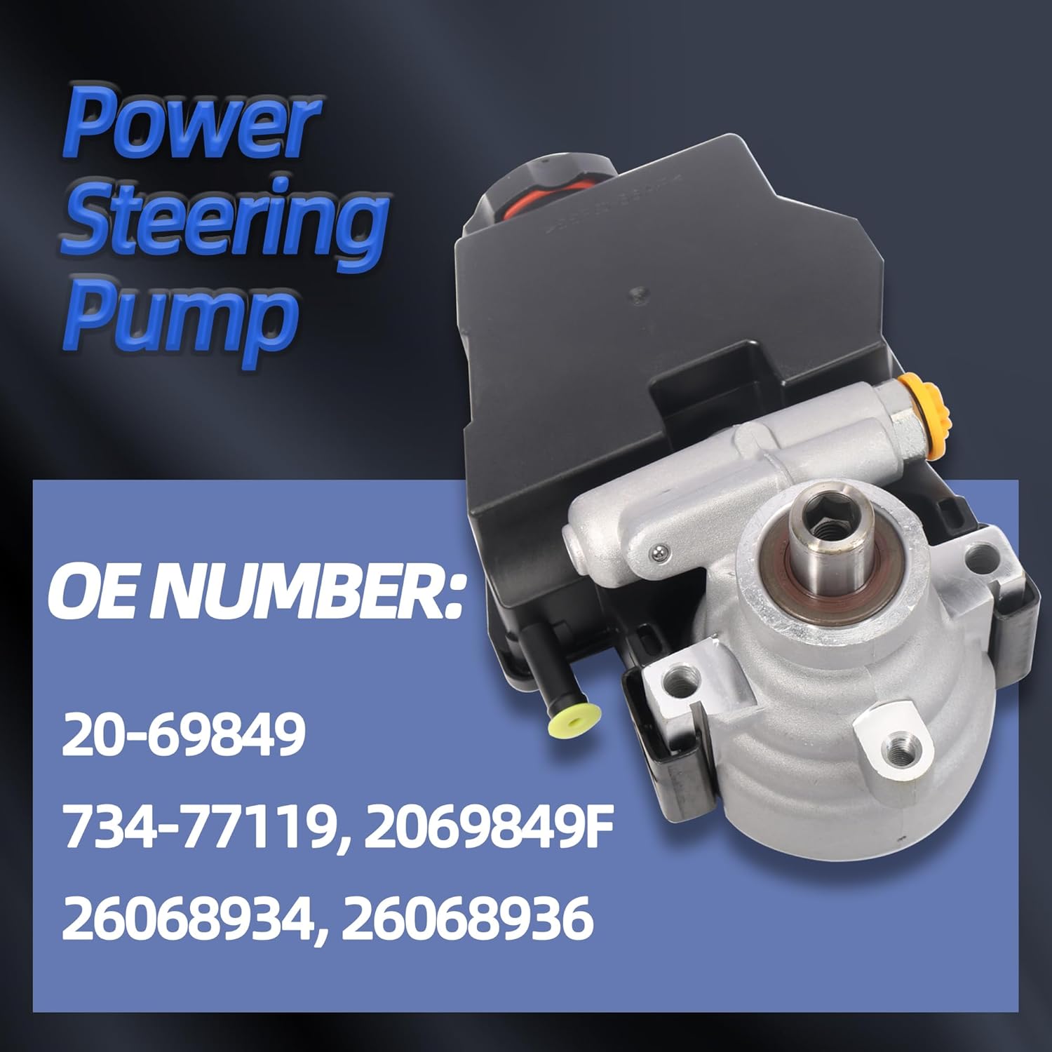 Bomba de Direção Hidráulica com Reservatório para Chevrolet Camaro e Pontiac Firebird (1998-2002, V8 5.7L). Substitui as peças 20-69849, 734-77119, 2069849F, 26068934 e 26068936. Oferece desempenho confiável, fácil instalação e melhora a manobrabilidade do veículo. Ideal para restaurar a eficiência do sistema de direção, garantindo uma condução suave e segura.