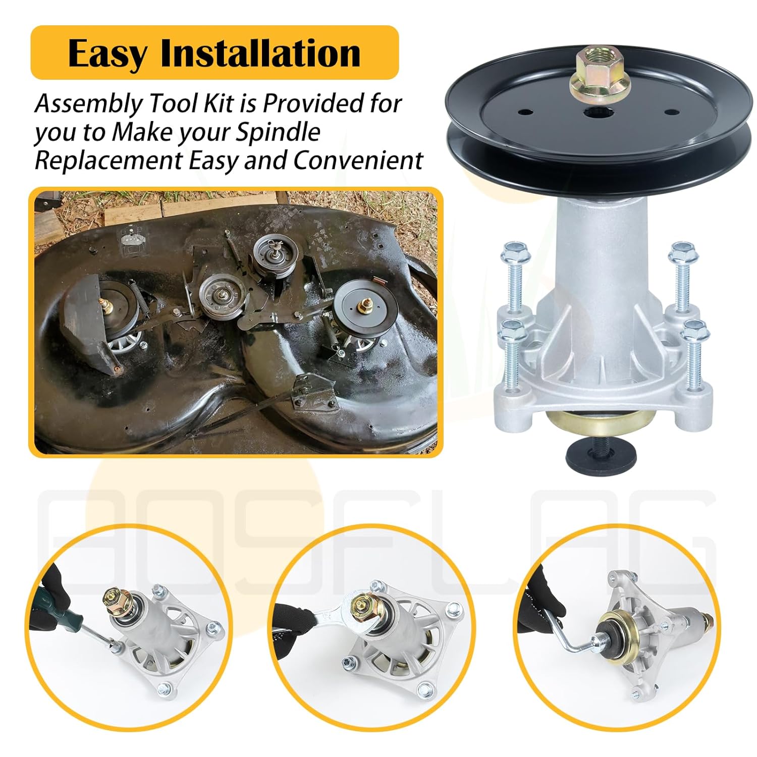 – Compatibilidade: Substitui uma ampla gama de montagens de eixo e polias, incluindo modelos Craftsman e Oregon.