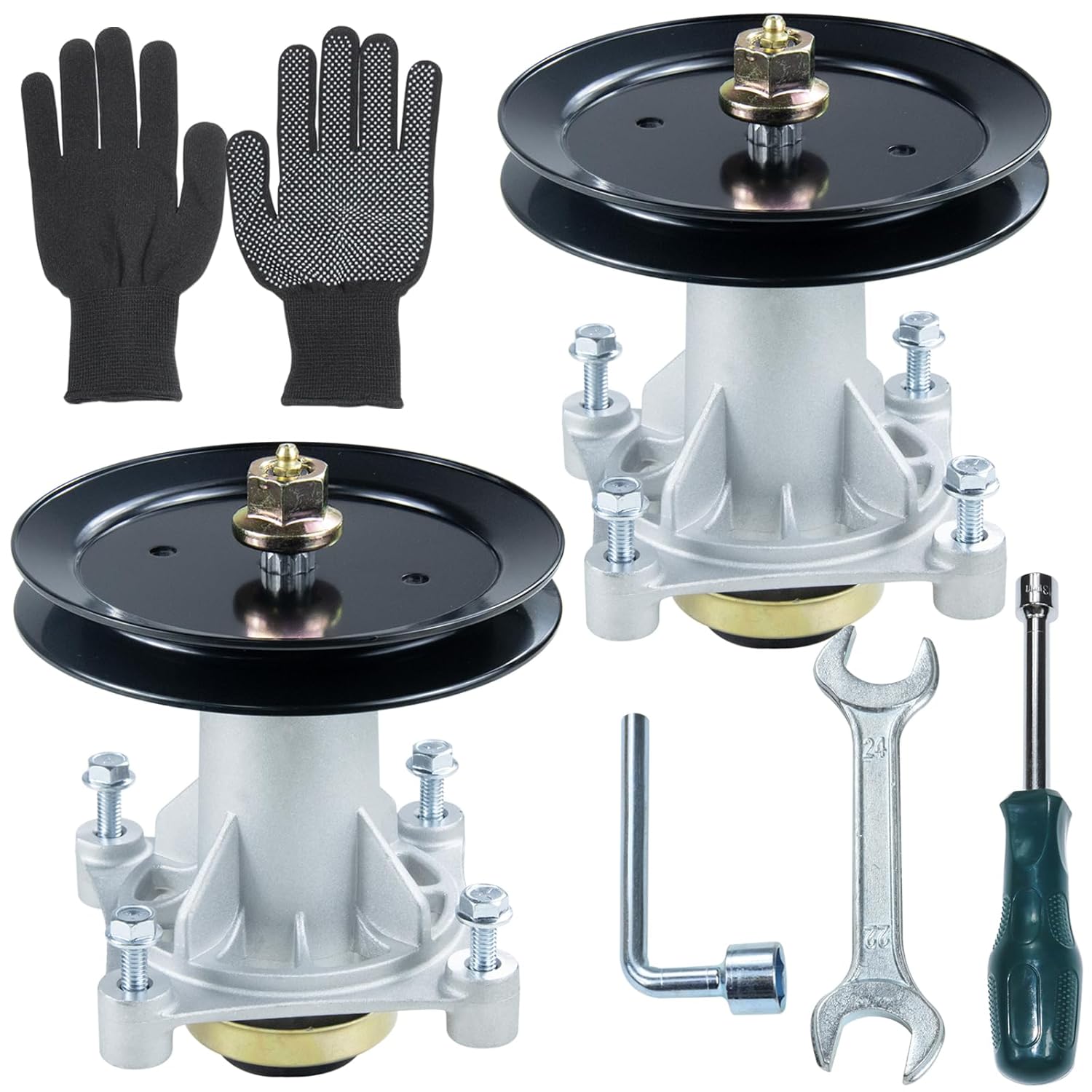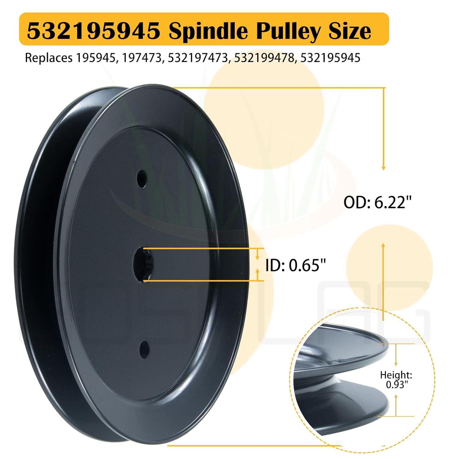Spindle pully 195945 that came with the spindle assembly is not same as Husqvarna 532197473. OD is the same, but the height and belt grove of this pully is smaller. Waste of money for the 2 pulleys