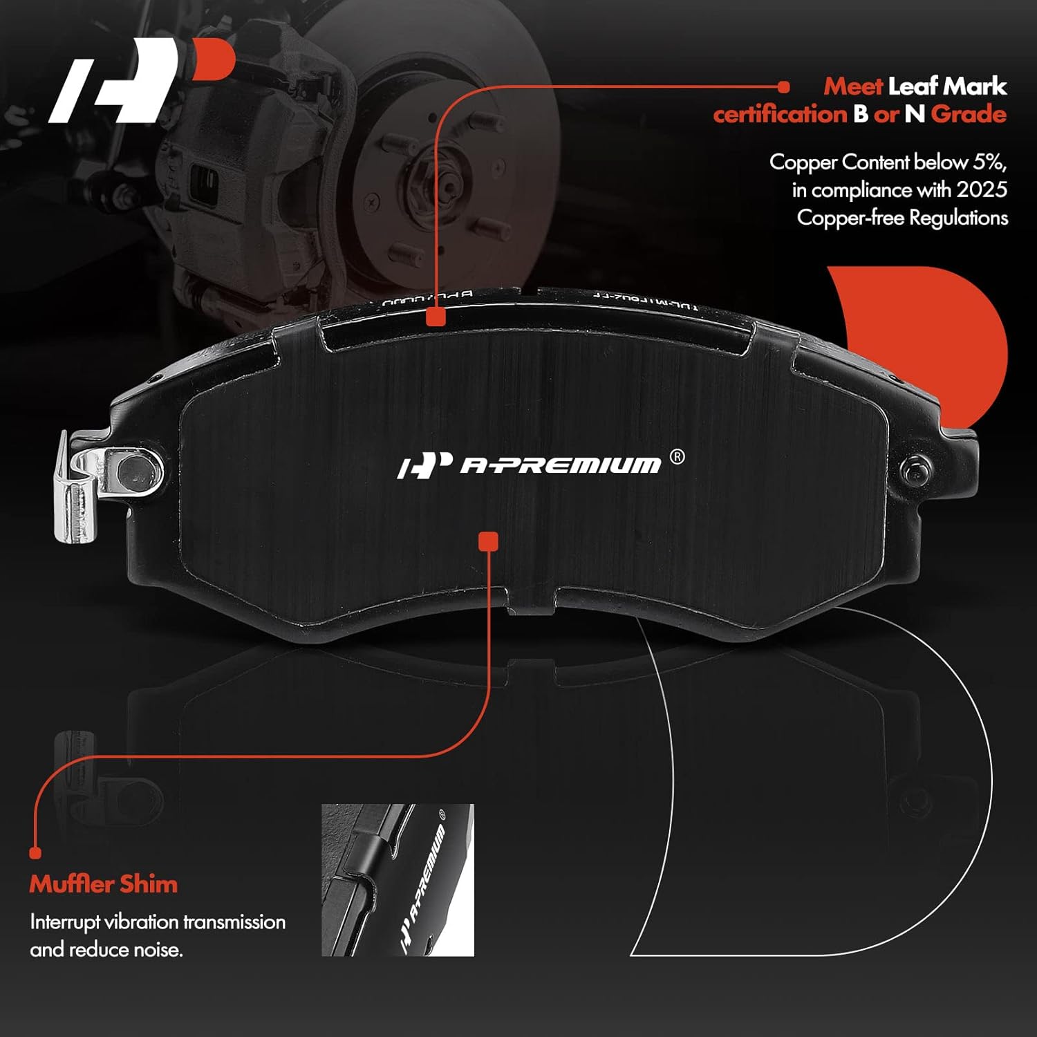 Kit de Discos de Freio Ventilados A-Premium 10.12" com Pastilhas Cerâmicas Compatível com Hyundai Elantra 1998-2002/2005-2006 e Tiburon 1999-2001 - Conjunto de 6 Peças