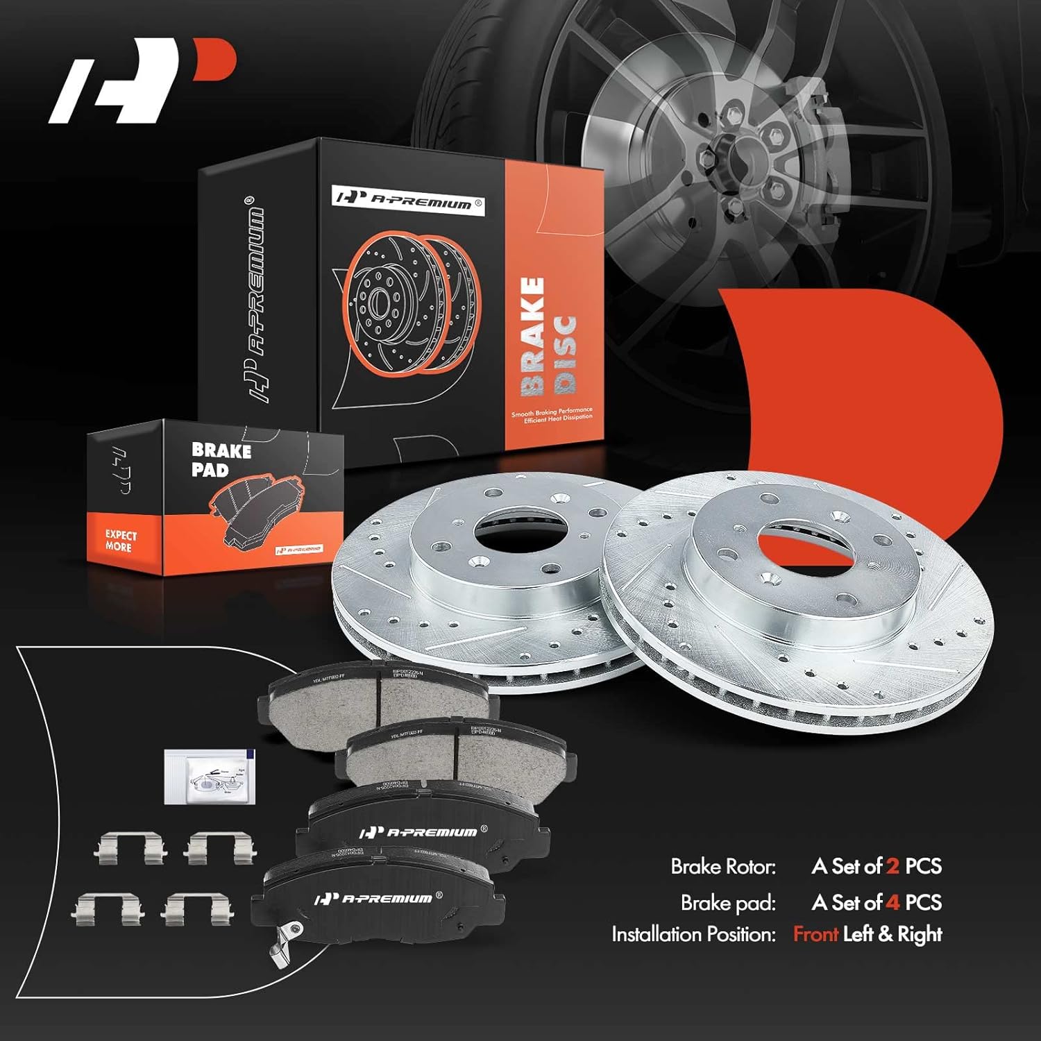 Descrição do Produto: A-Premium 10.24 inch (260 mm) Front Drilled and Slotted Disc Brake Rotors Ceramic Pads Kit
