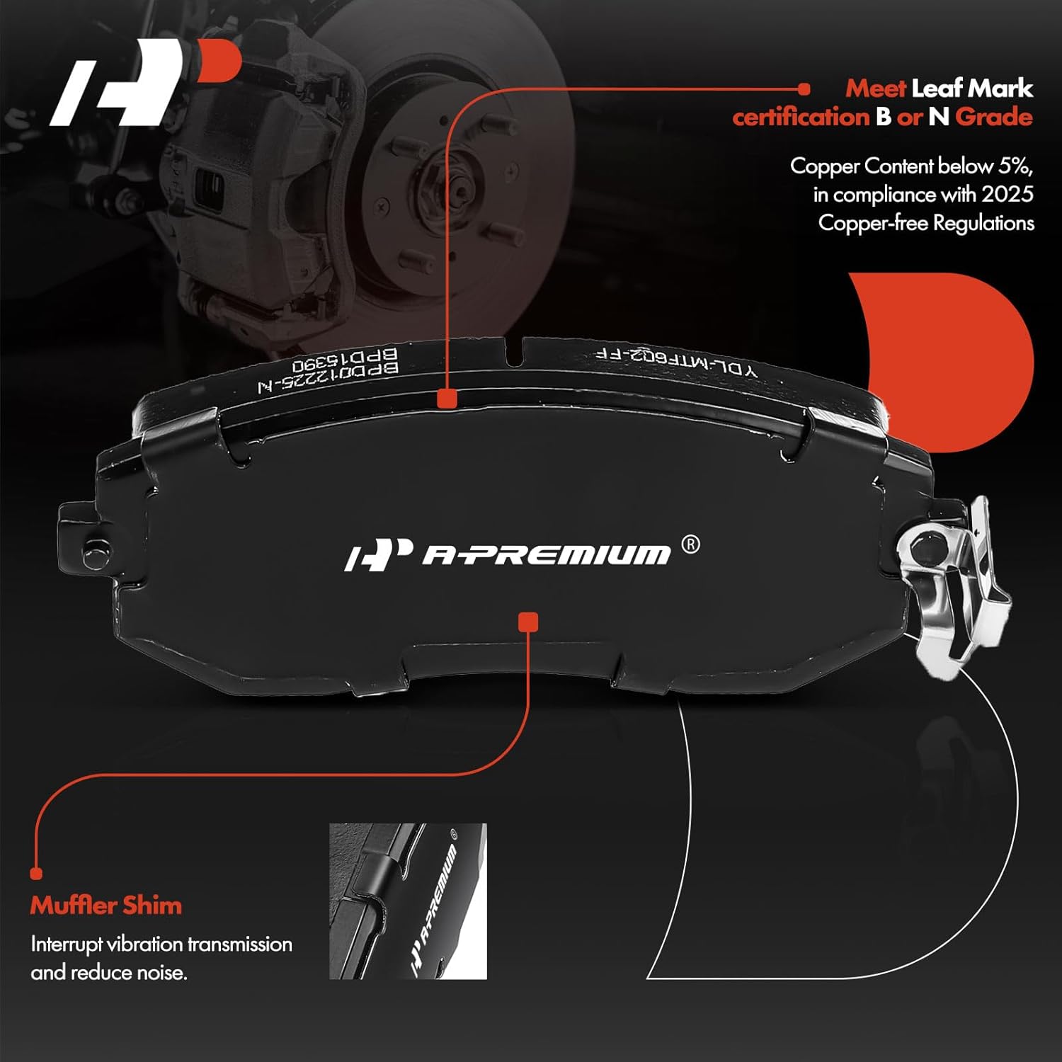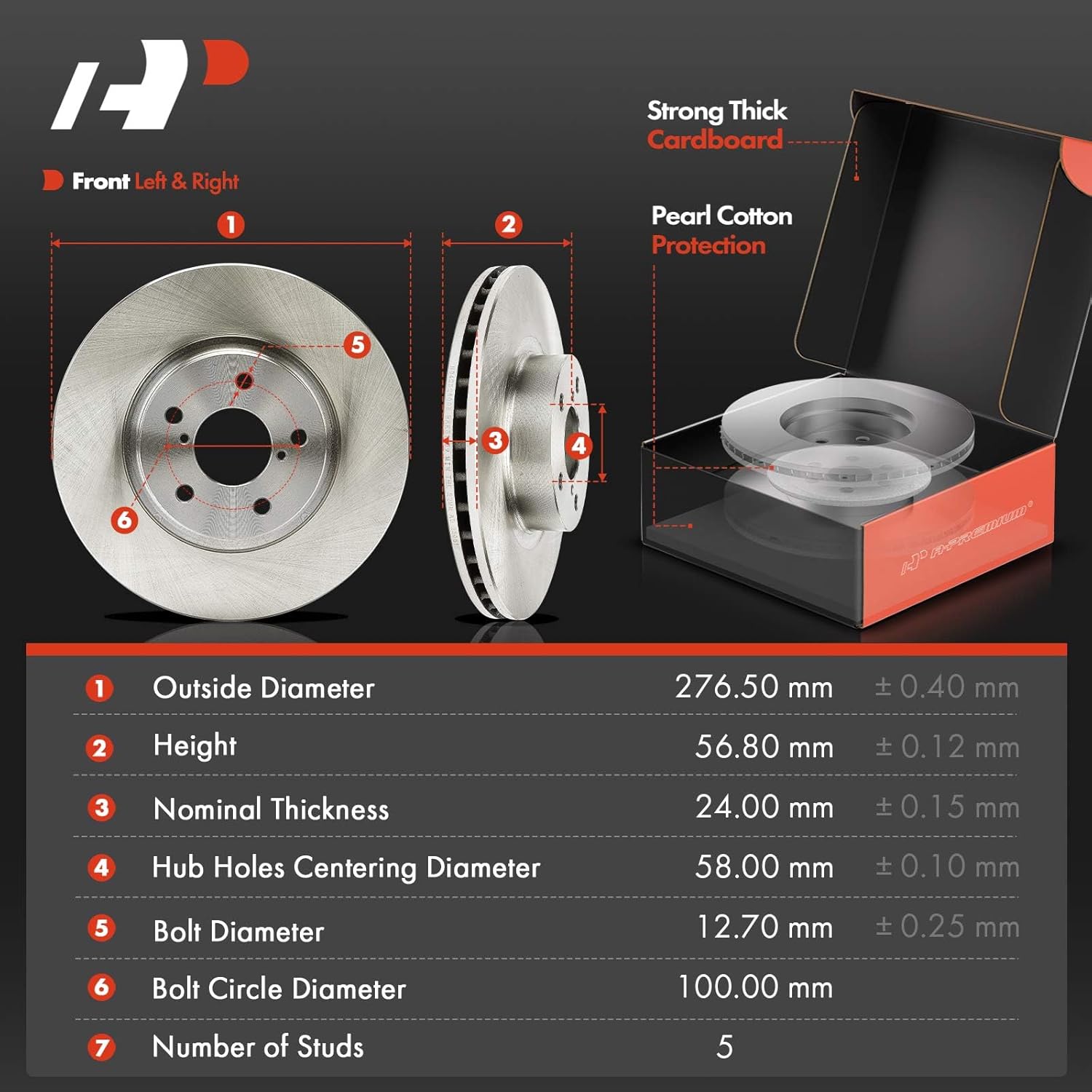 Descrição do Produto: A-Premium 10.88 inch (276.5mm) Front Vented Disc Brake Rotors Ceramic Pads Kit
