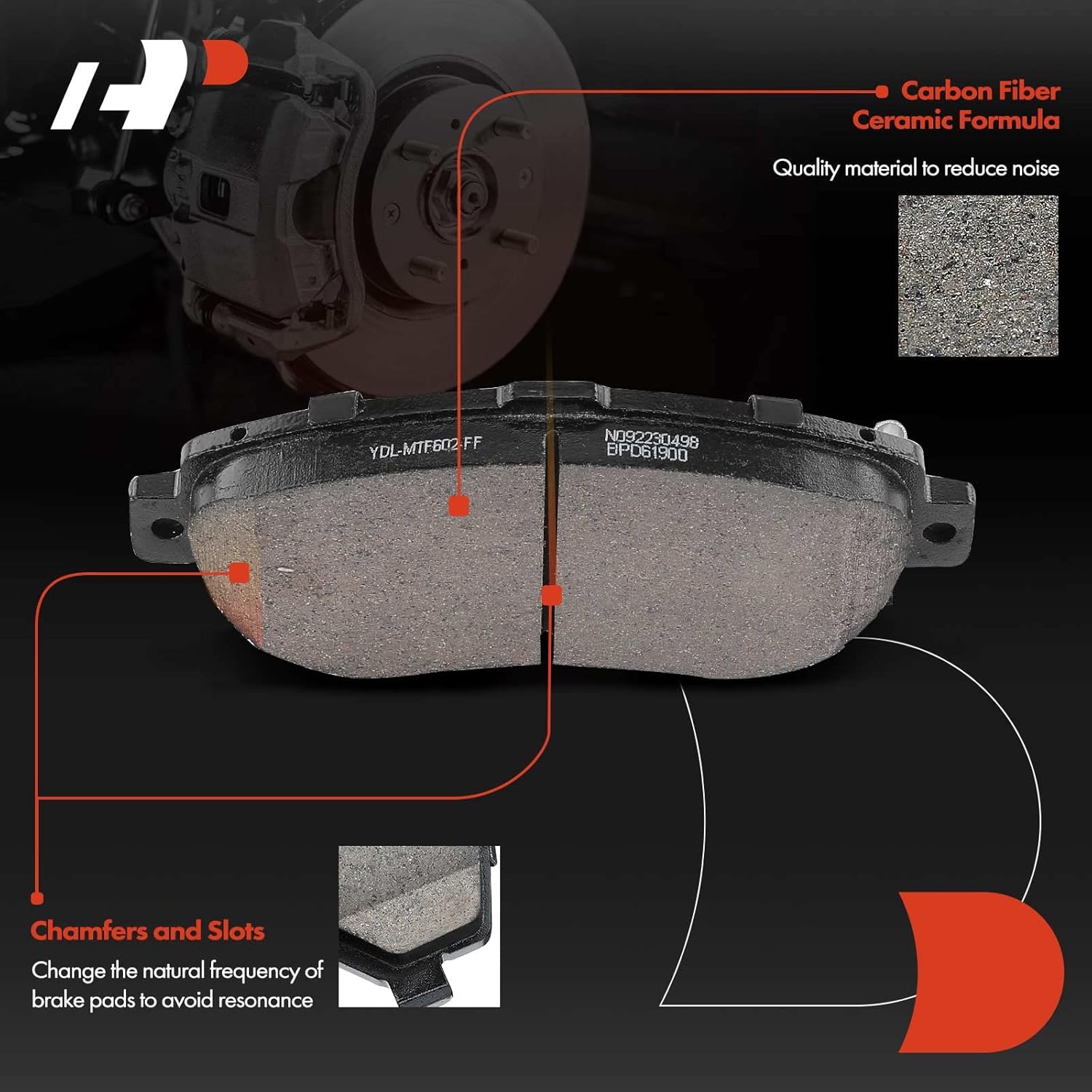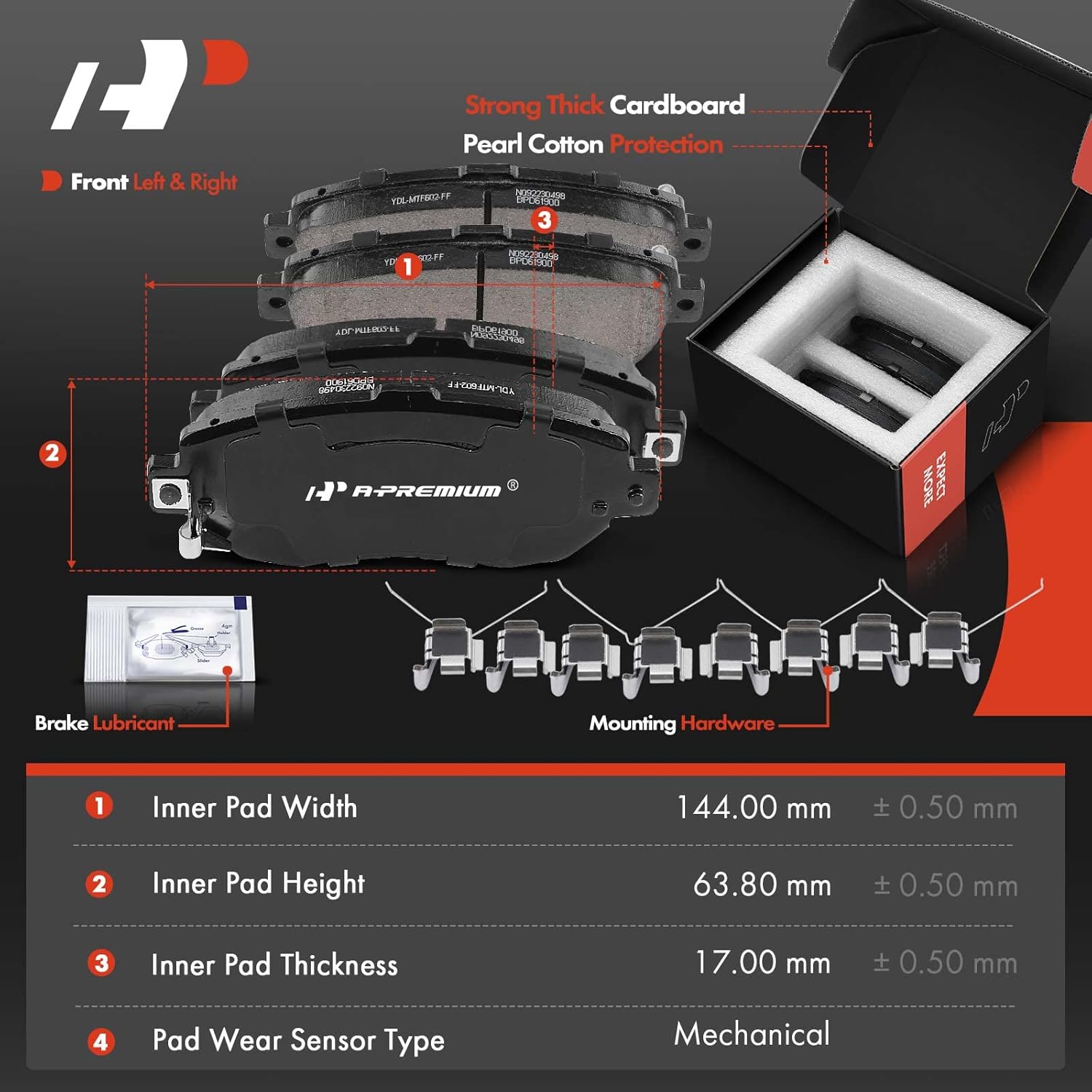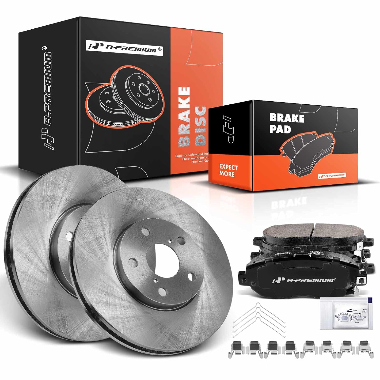 Descrição do Produto: A-Premium 11.65 in (296mm) Front Drilled and Slotted Disc Brake Rotors Ceramic Pads Kit