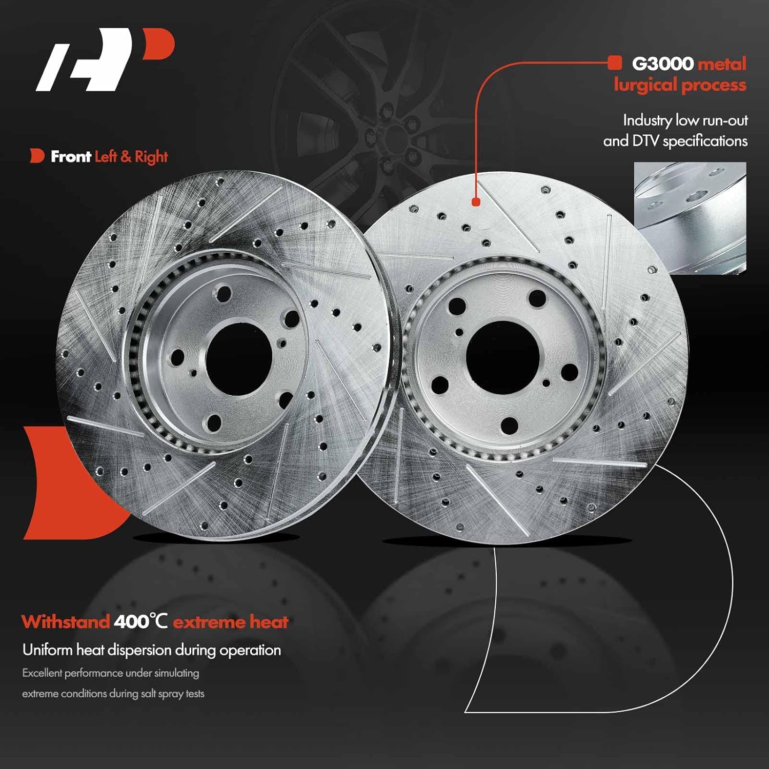 Descrição do Produto: A-Premium 11.65 in (296mm) Front Drilled and Slotted Disc Brake Rotors Ceramic Pads Kit