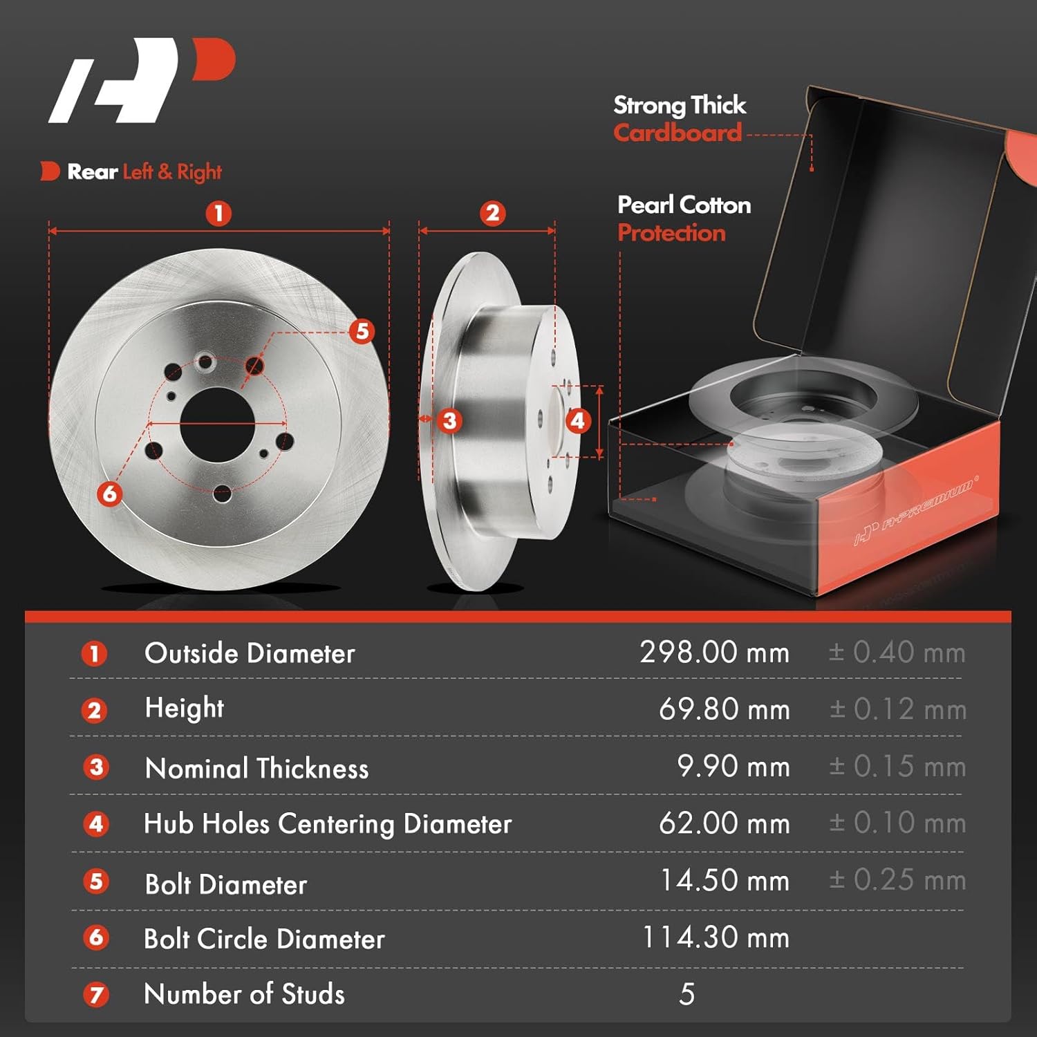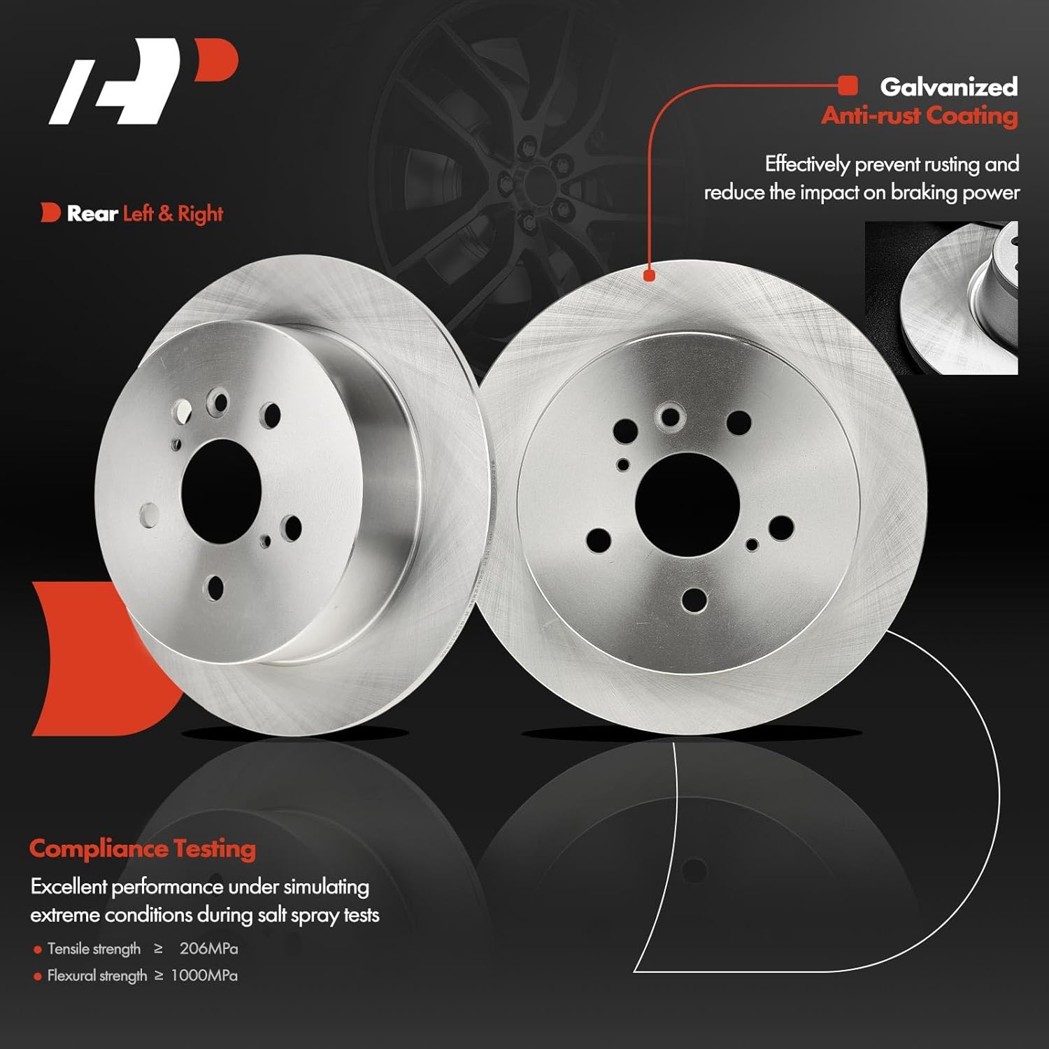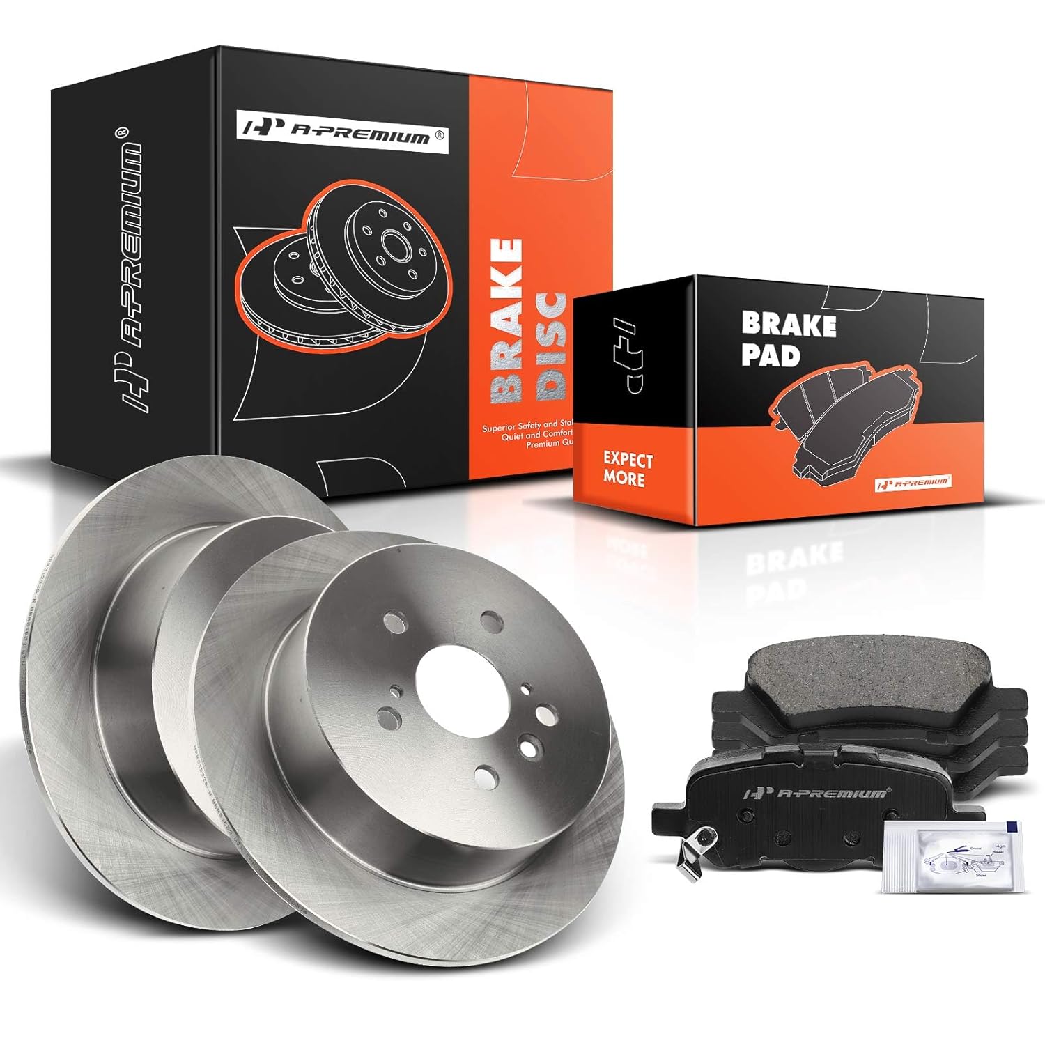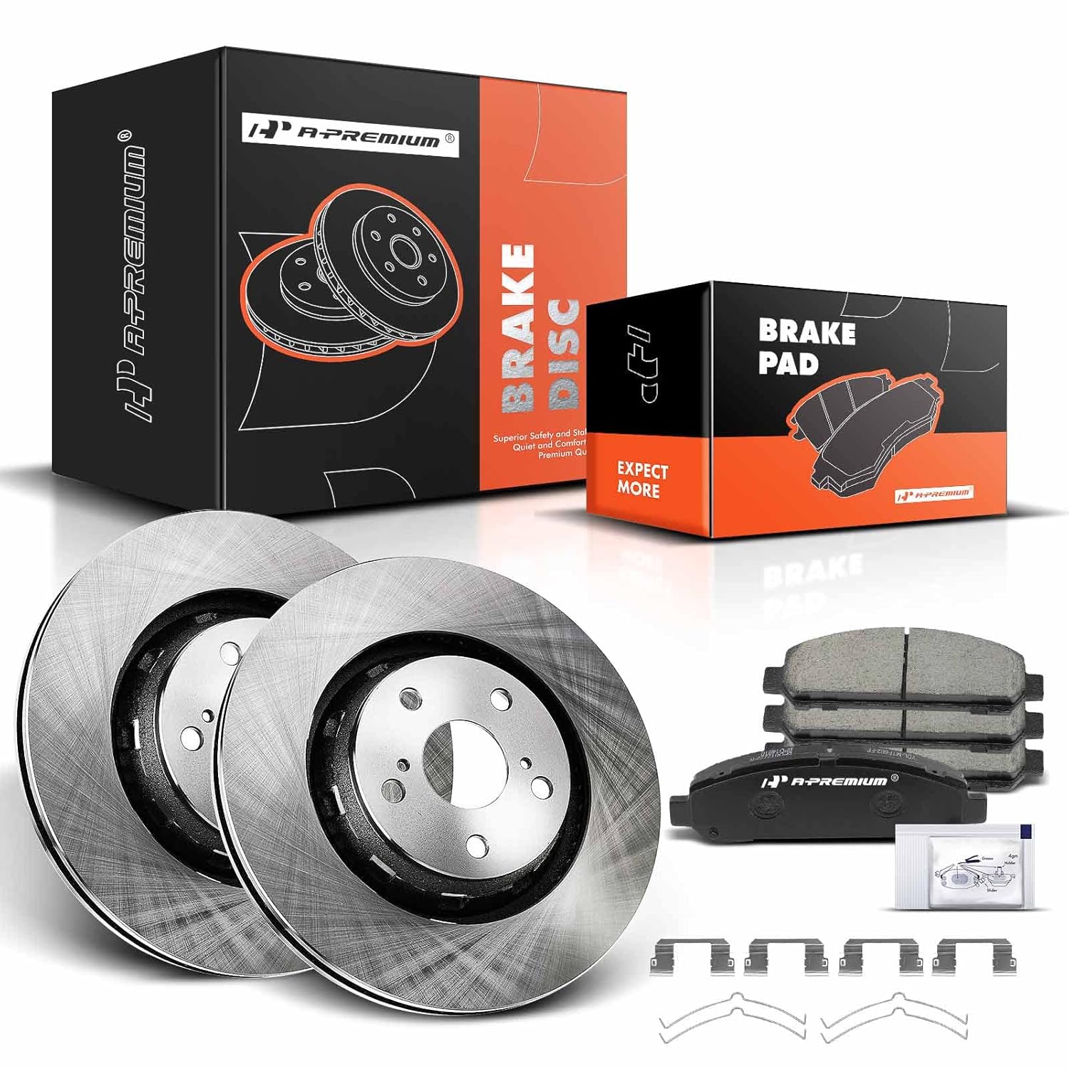 Descrição do Produto: A-Premium 11.72 inch (297.8mm) Rear Solid Brake Rotors Ceramic Pads Kit