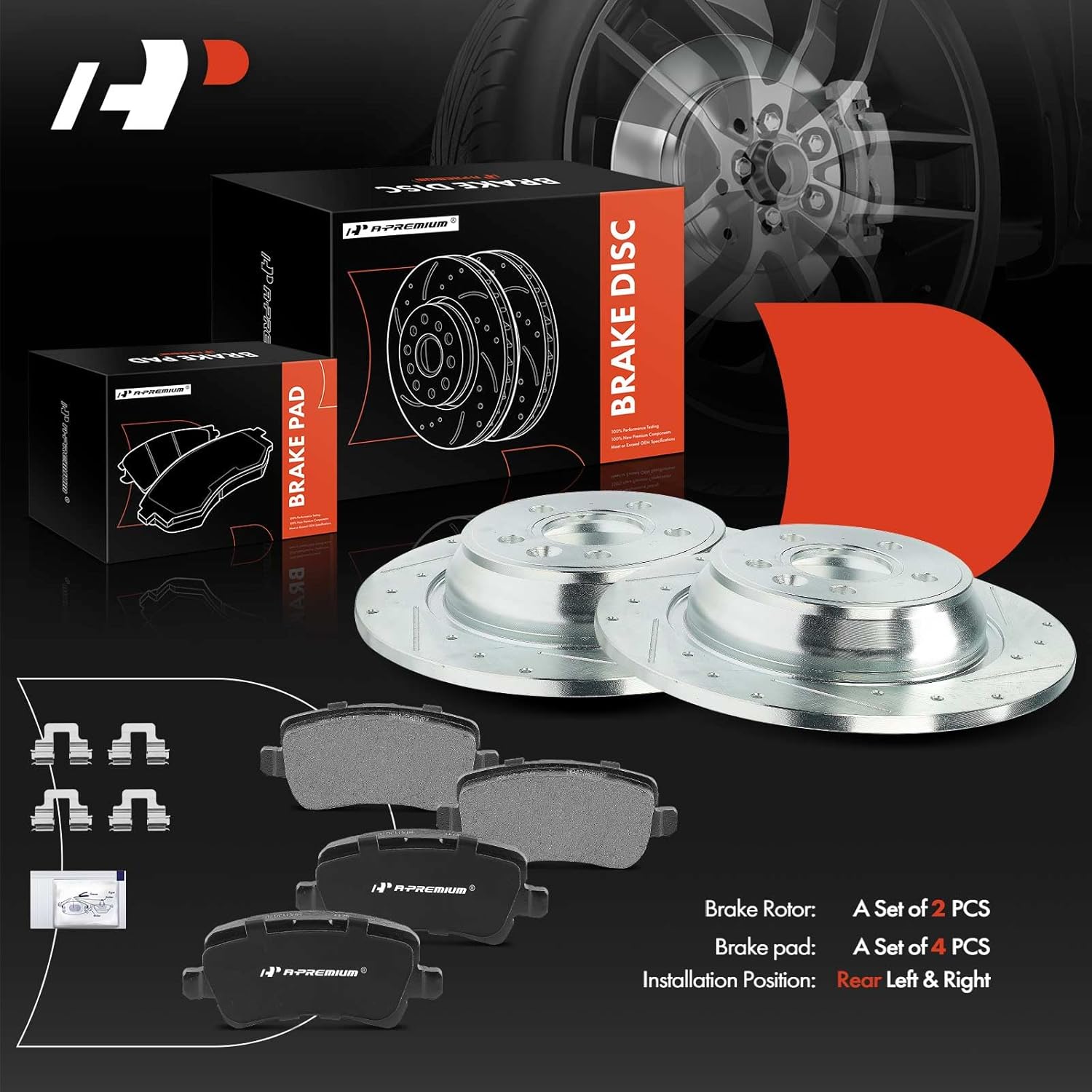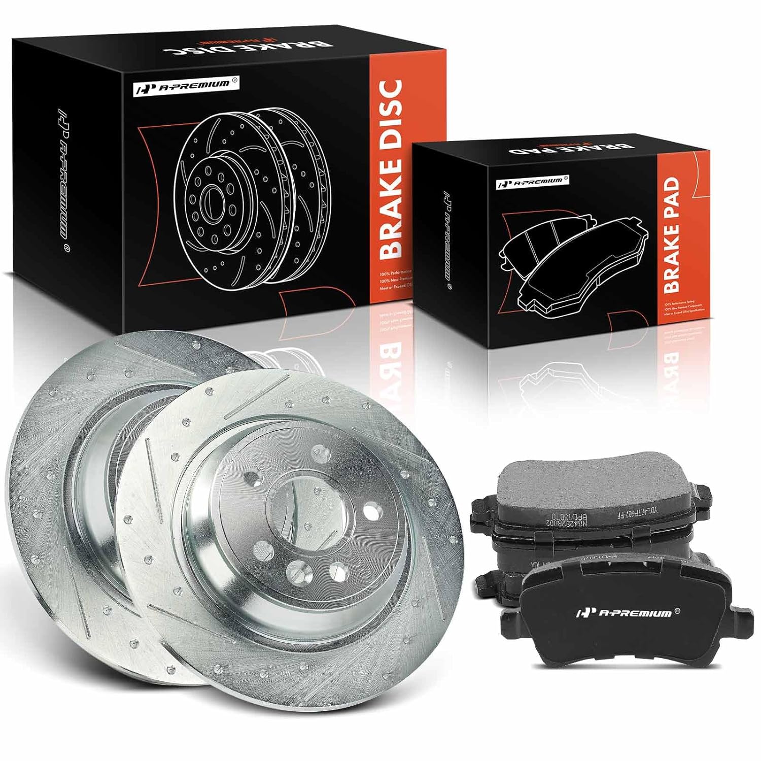 Descrição do Produto: A-Premium 11.88 inch (301.7mm) Rear Drilled and Slotted Disc Brake Rotors Ceramic Pads Kit