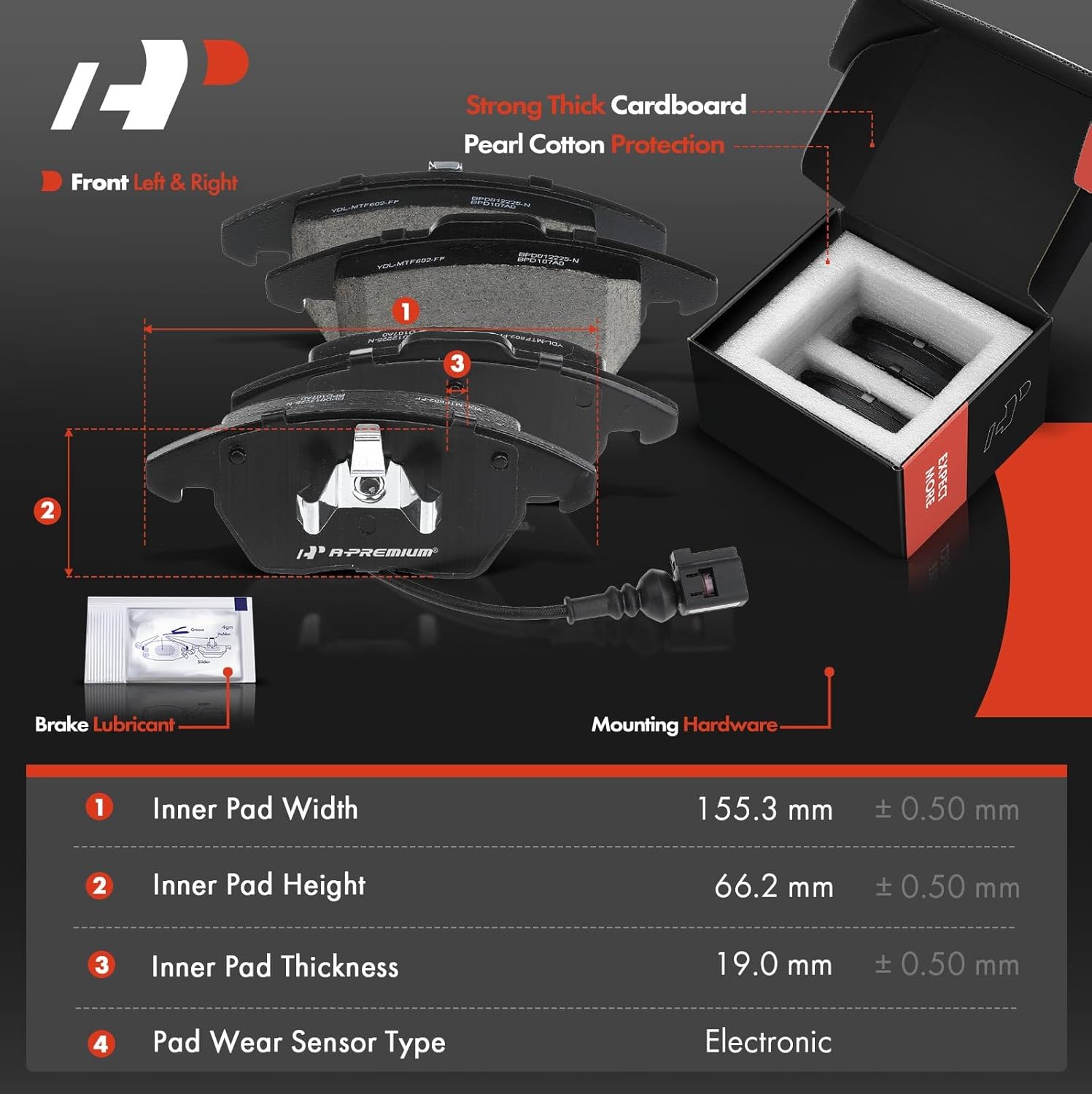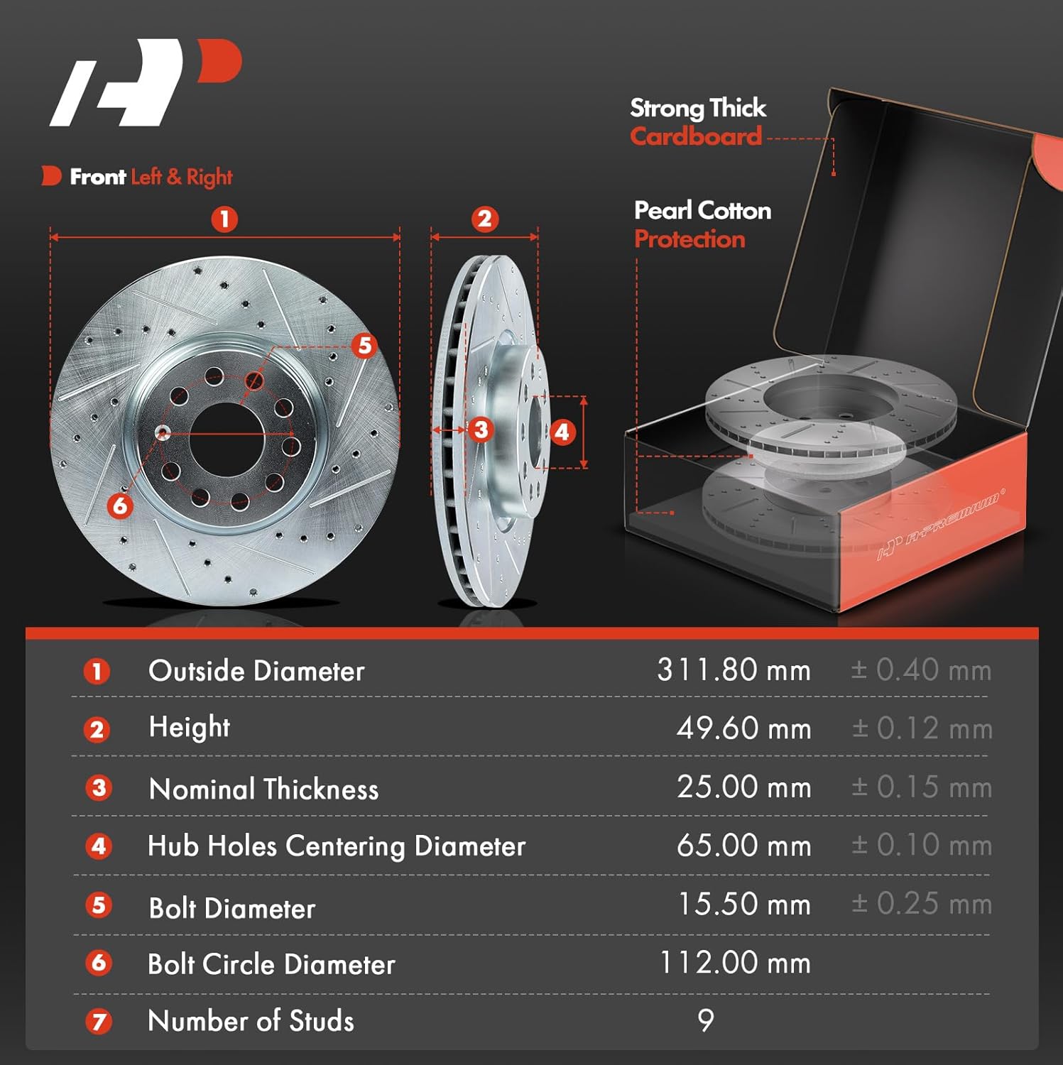 Descrição do Produto: A-Premium 12.28 inch (312mm) Front Vented Disc Brake Rotors Ceramic Pads Kit