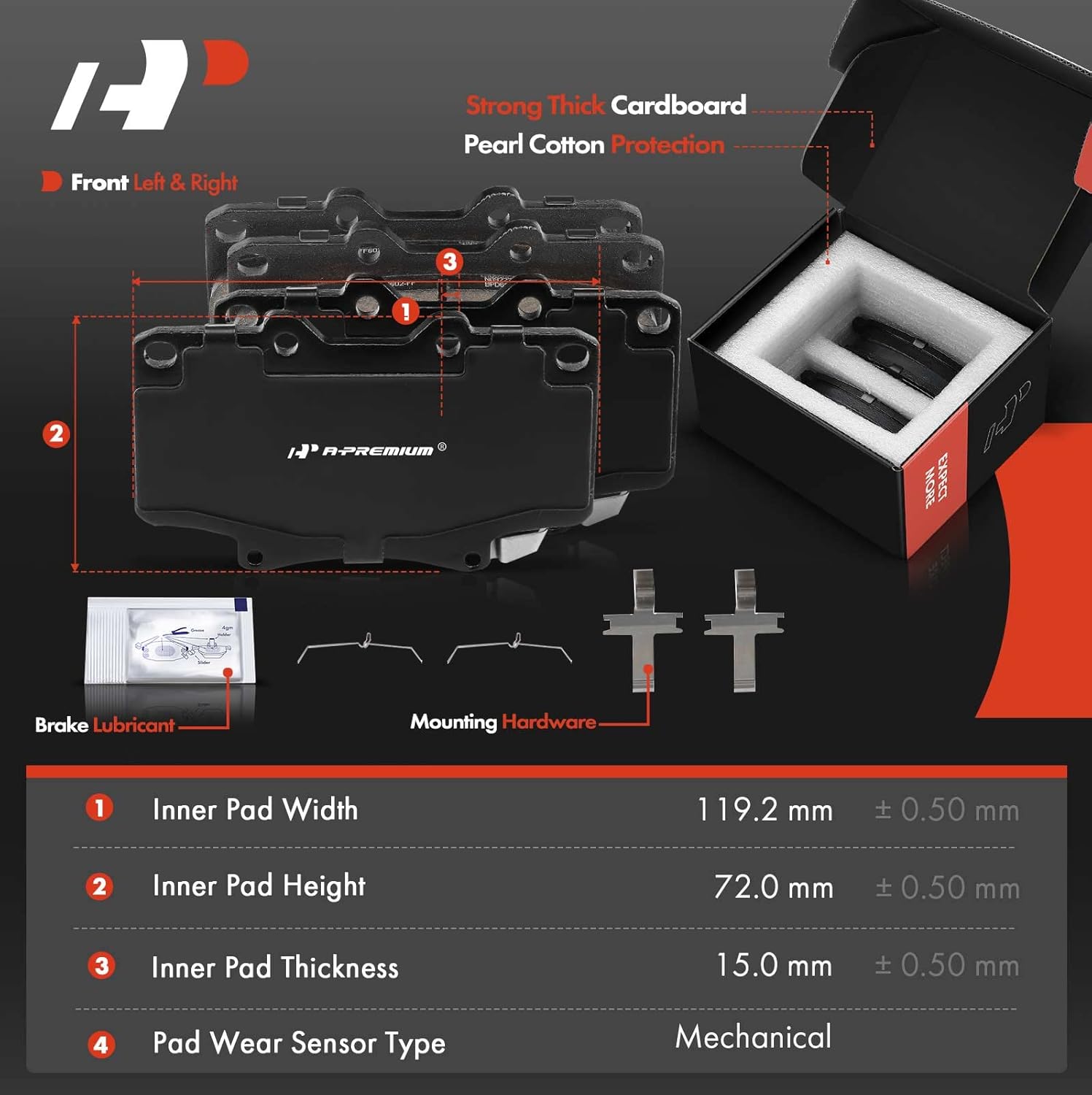 Descrição do Produto: A-Premium 12.55 inch (318.7mm) Front Vented Disc Brake Rotors Ceramic Pads Kit