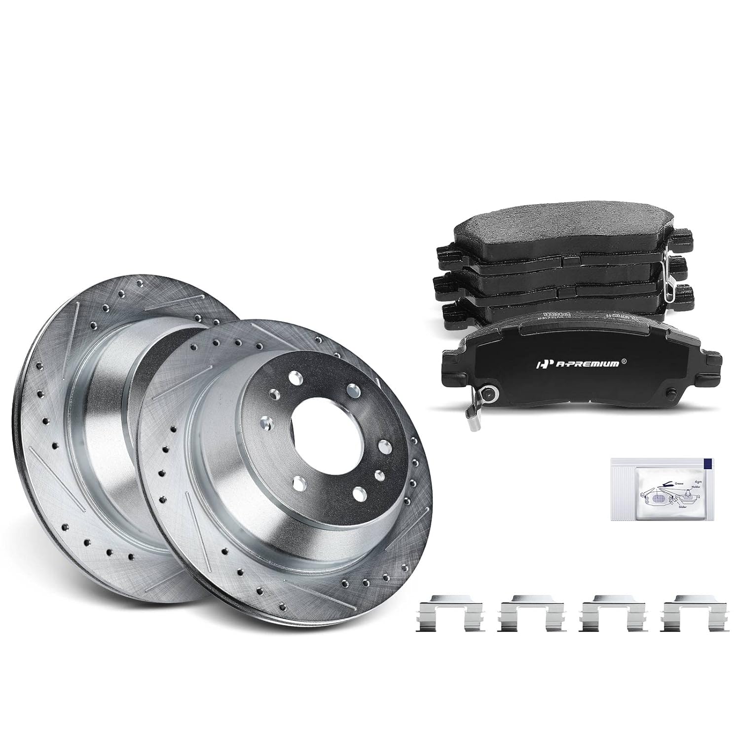Descrição do Produto: A-Premium 12.80 inch (325 mm) Rear Drilled and Slotted Disc Brake Rotors Ceramic Pads Kit